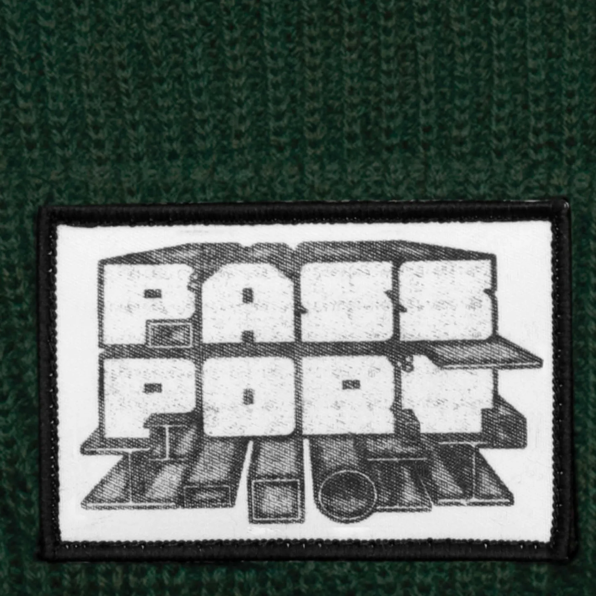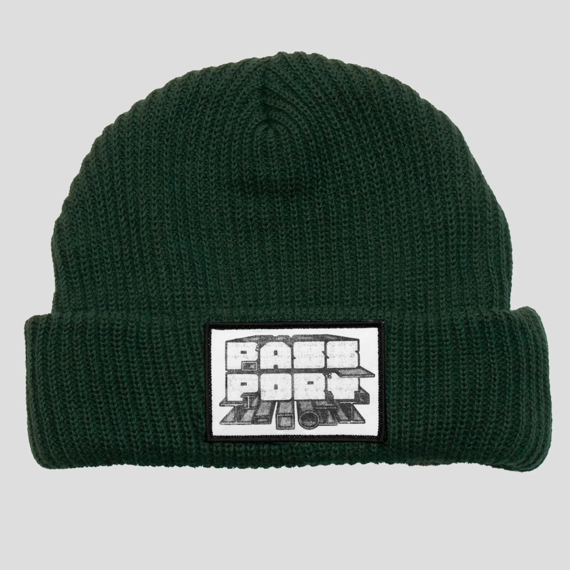 Pass~Port Shippin’ Steel beanie in forest green from range #39. Made from 100% acrylic with printed patch on front.