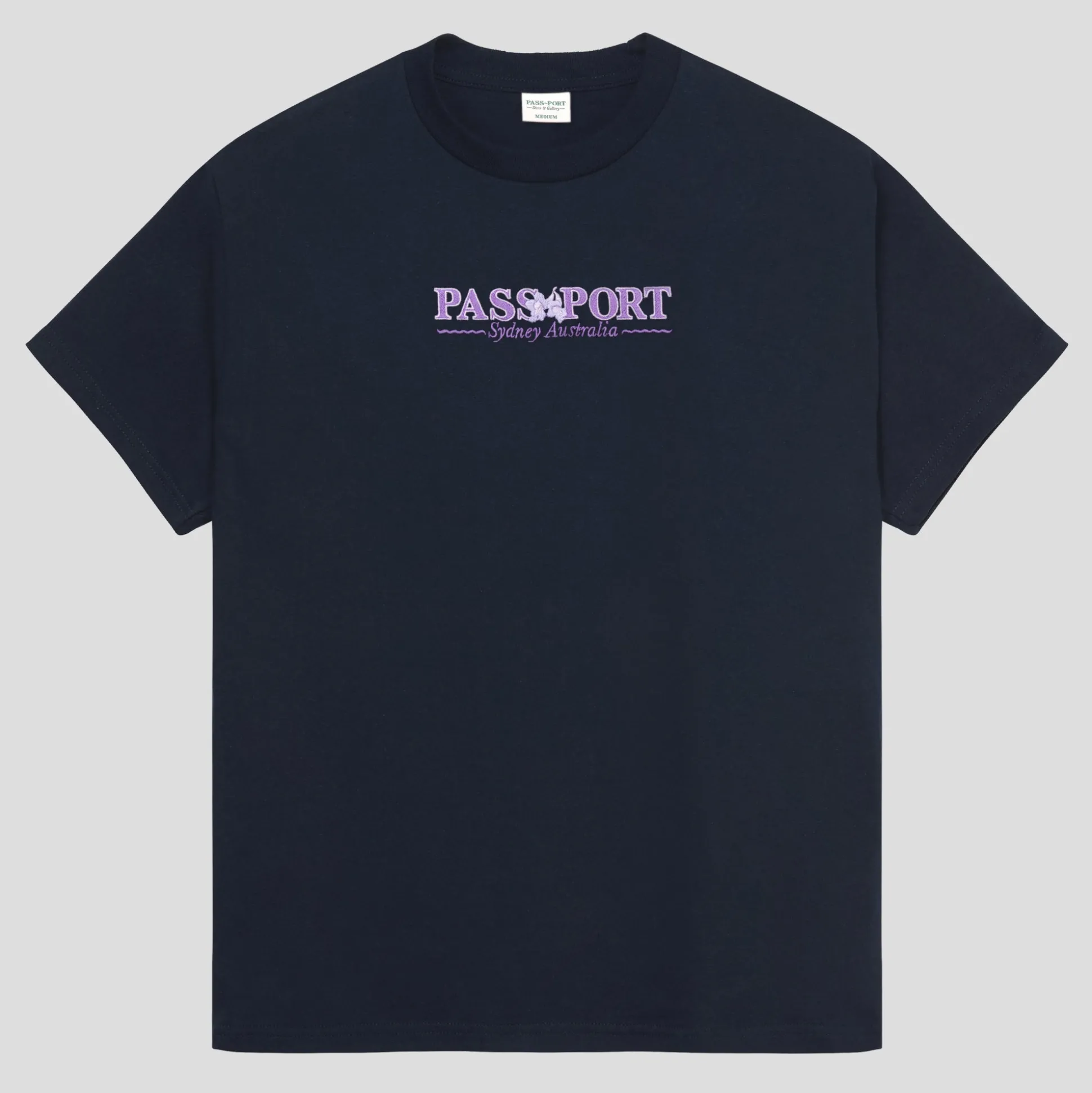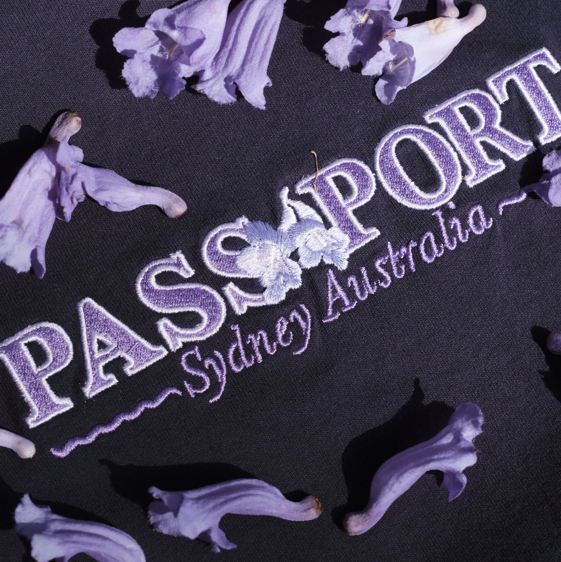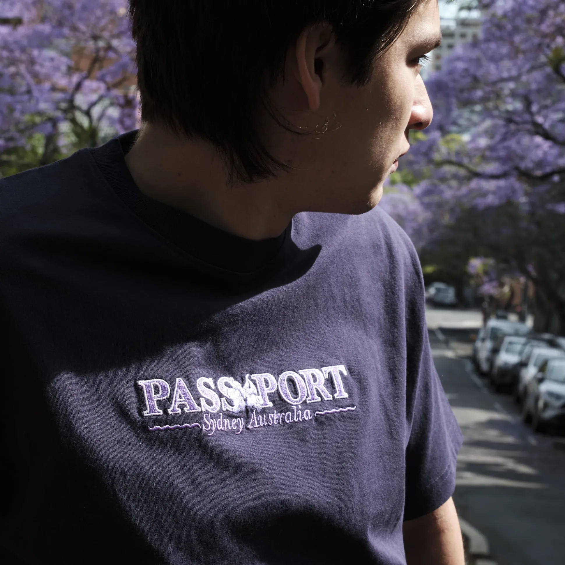 Coming out of the cold months of winter into spring the streets of Sydney turn purple. To celebrate this time of year we are offering a Pass~Port Store & Gallery exclusive tee in extremely limited numbers. The new souvenir t-shirt showcases the Jacaranda flower that spreads throughout Sydney. This Pass~Port tee is made from 100% cotton with embroidered front.
