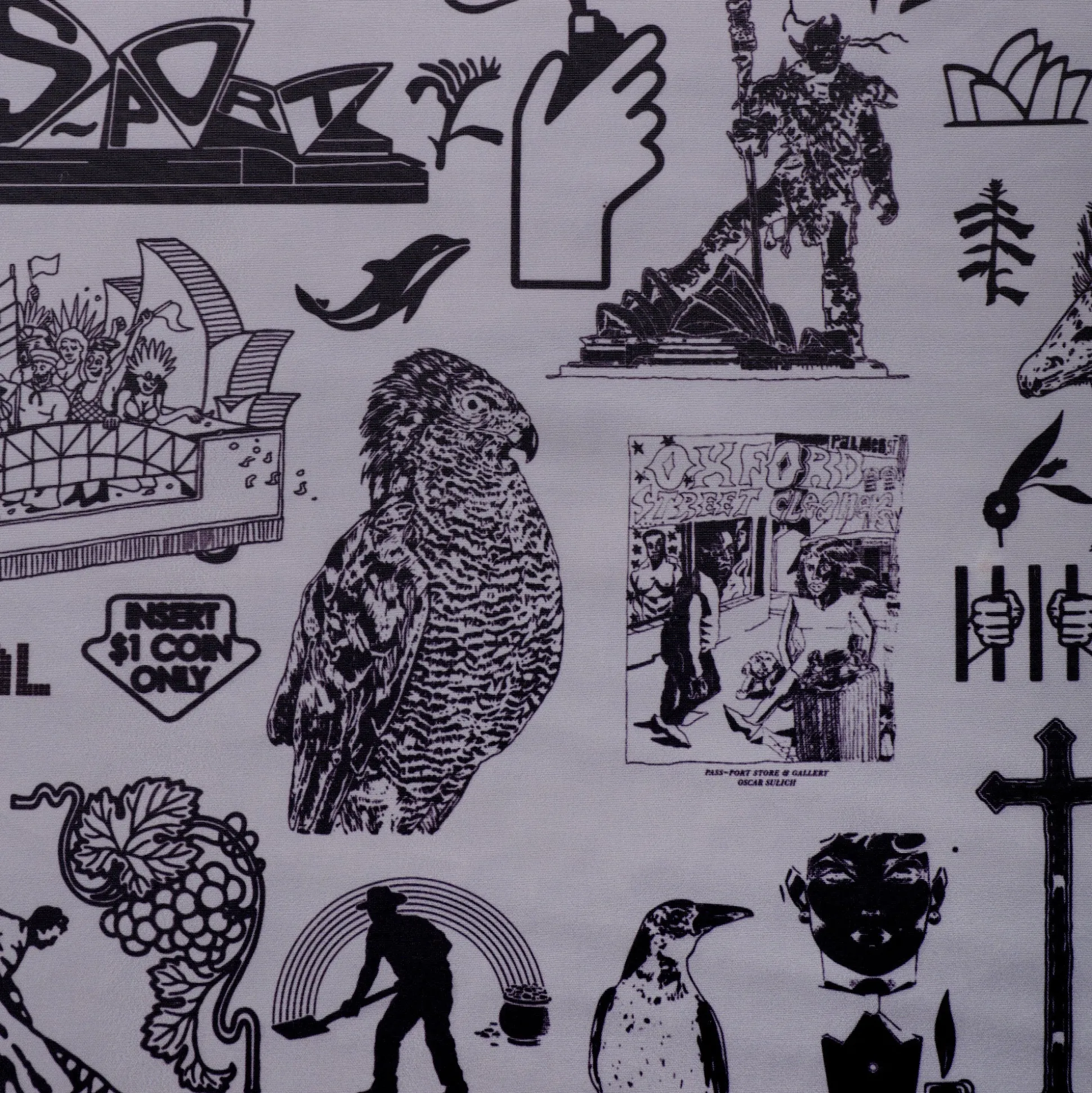 Pass~Port Store & Gallery Exclusive RPET Drawstring bag is a recycled polyester construction and features collation of archival Pass~Port graphics all over. The bag also comes with cotton rope string and reinforced loop holes.