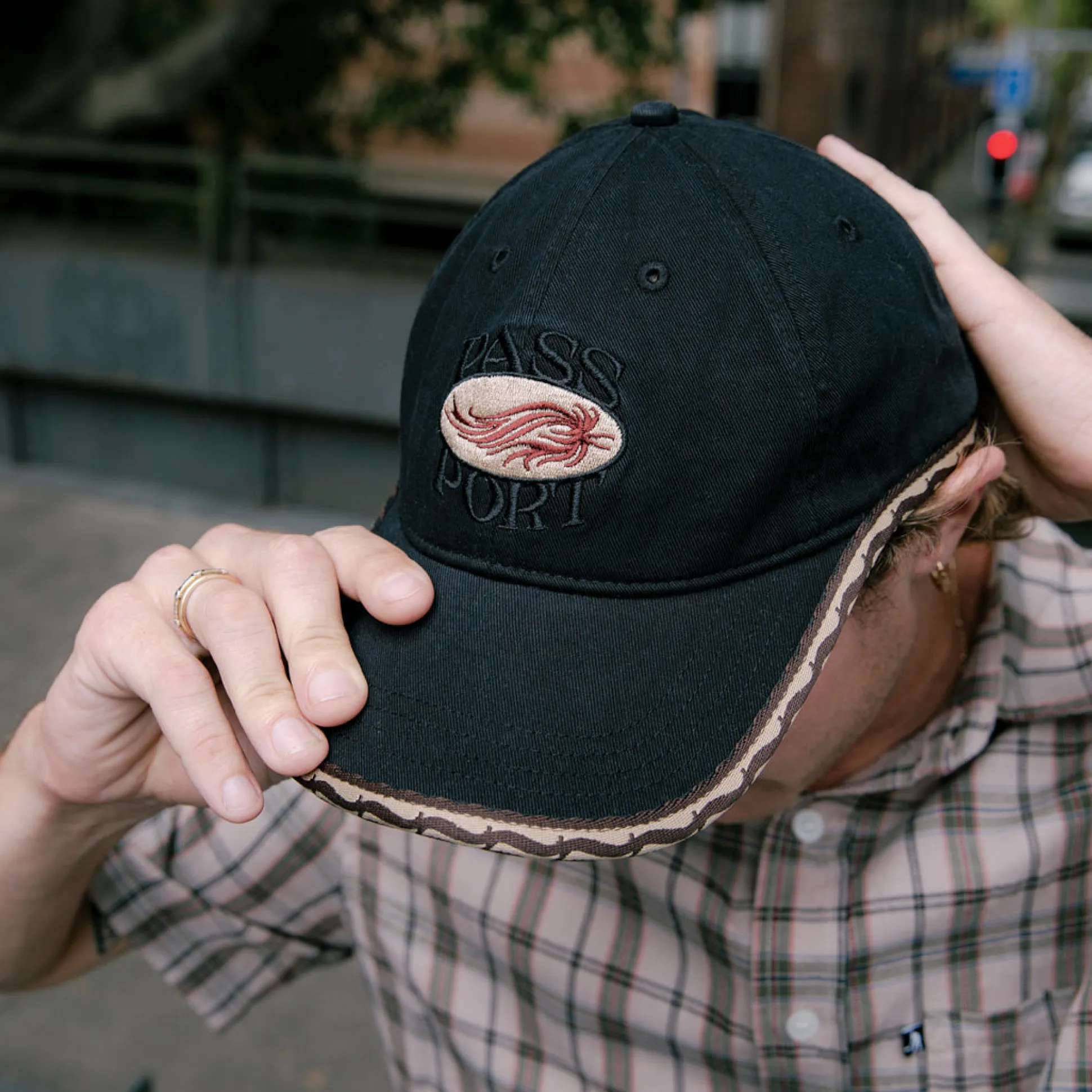- Adjustable strapback with brass buckle