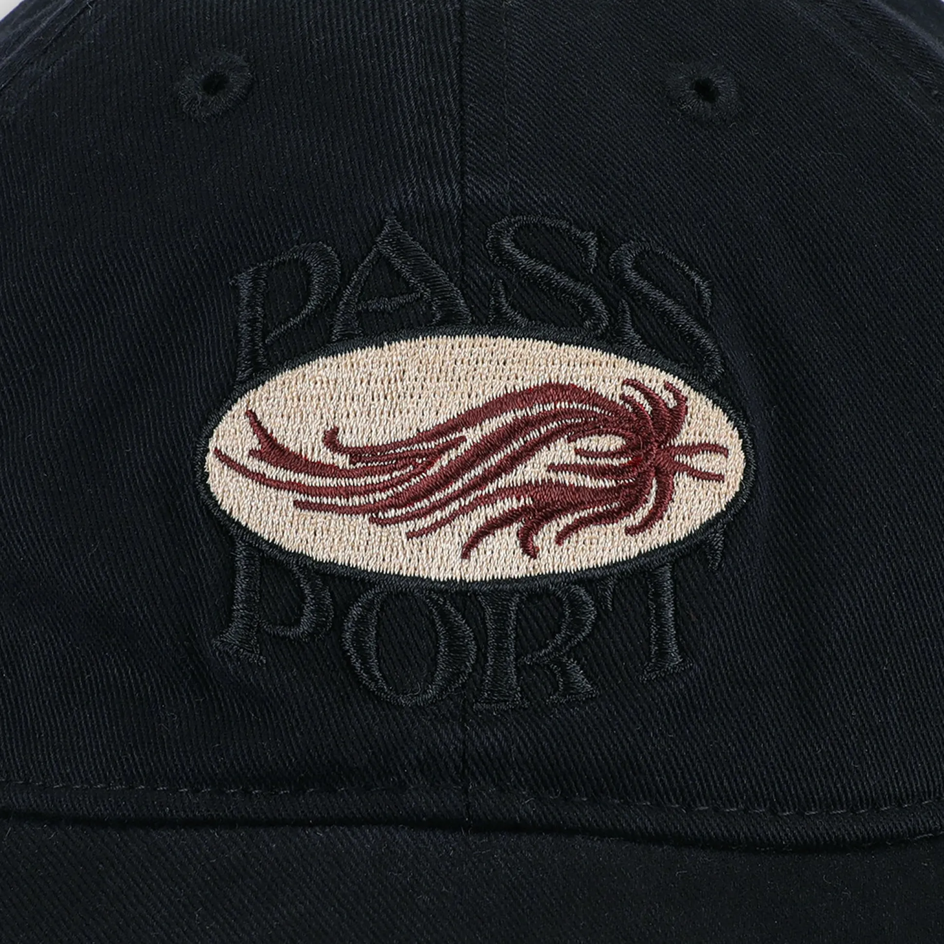 Pass~Port Sunspot Leagues cap from range #44. The Pass~Port hat is made from heavy cotton twill with direct embroidery and tilde webbed trim.