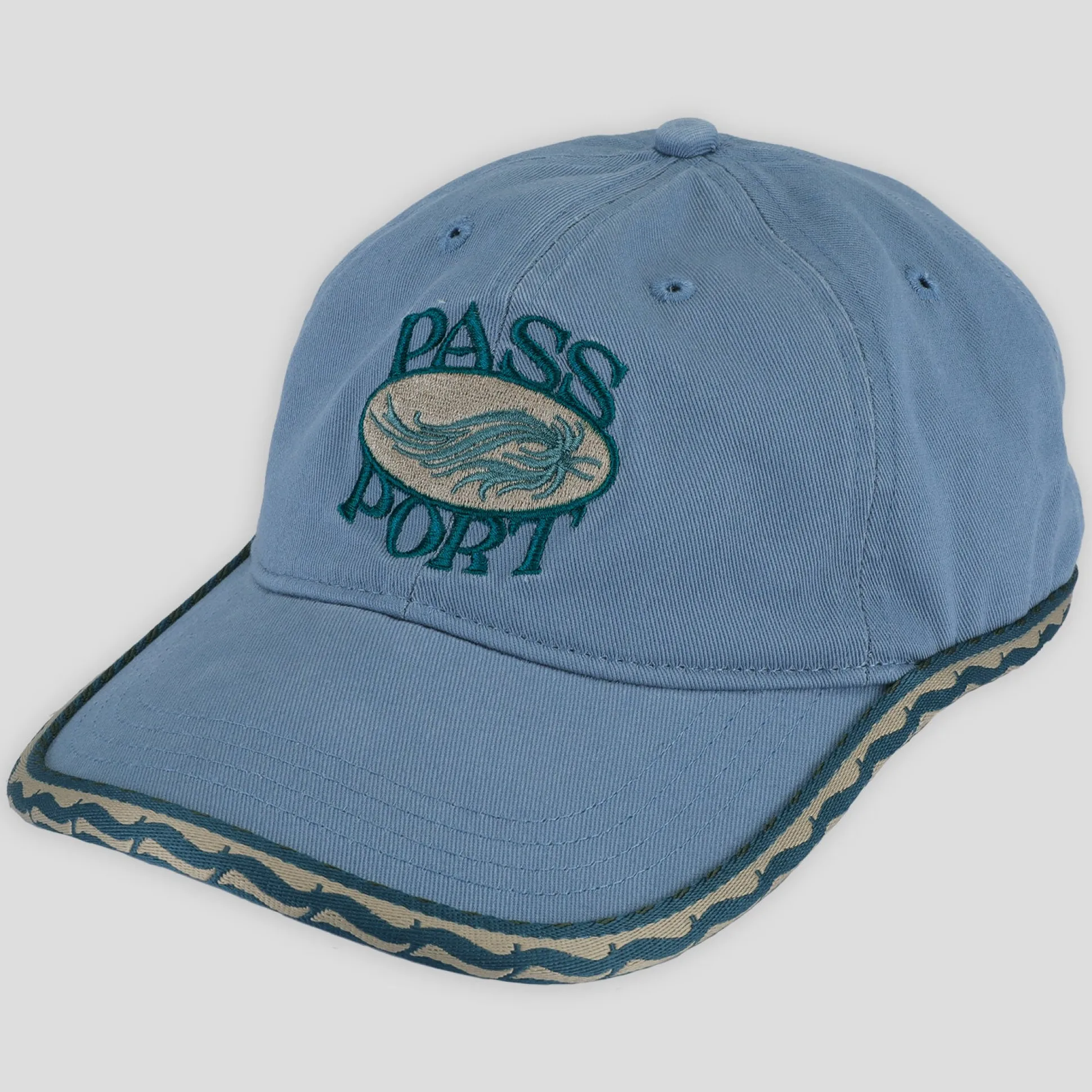 Pass~Port Sunspot Leagues cap from range #44. The Pass~Port hat is made from heavy cotton twill with direct embroidery and tilde webbed trim.