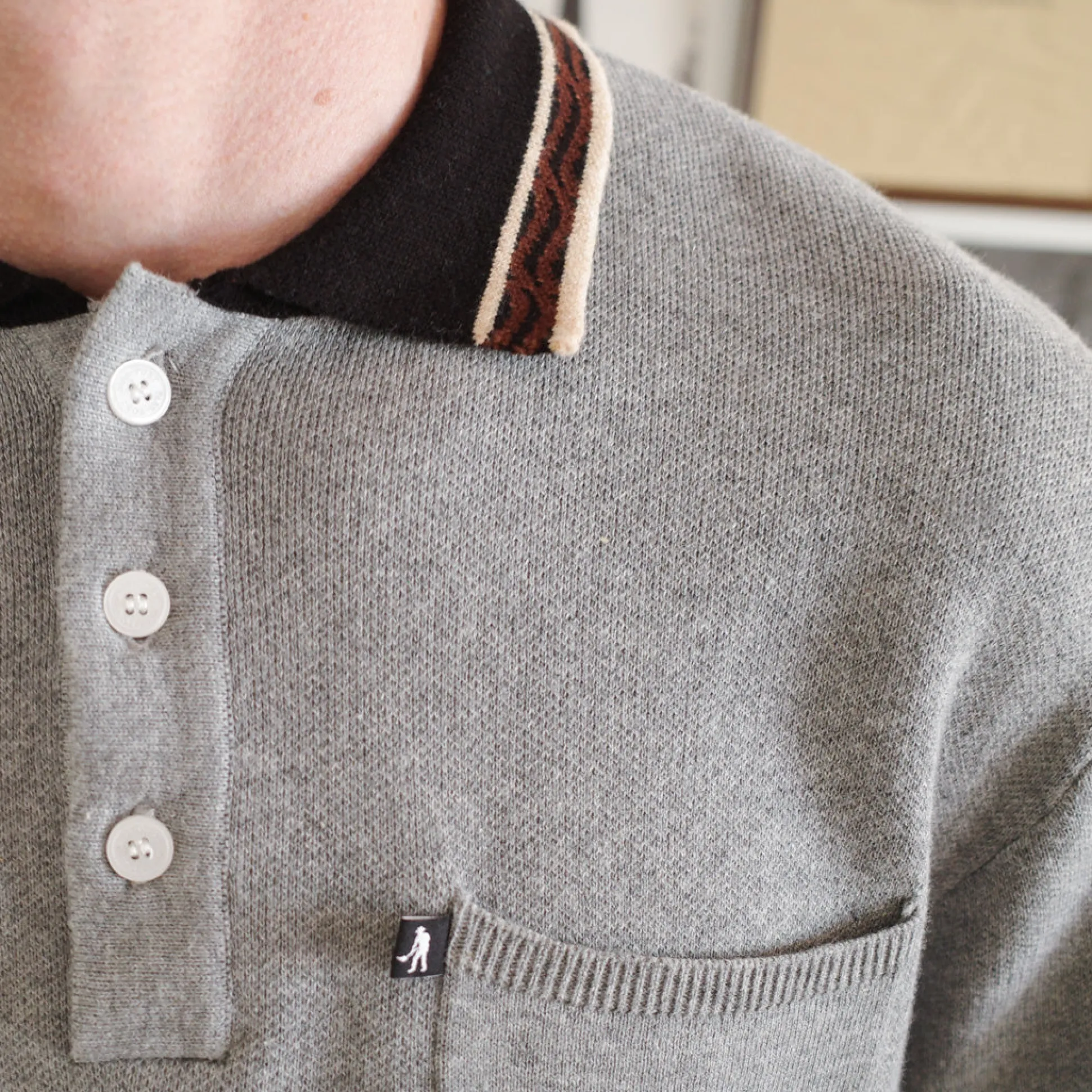 Pass~Port Sunspot Organic Knit Polo from range #44. The Pass~Port Knit polo is made from 100% organic cotton and features a jacquard knit collar.