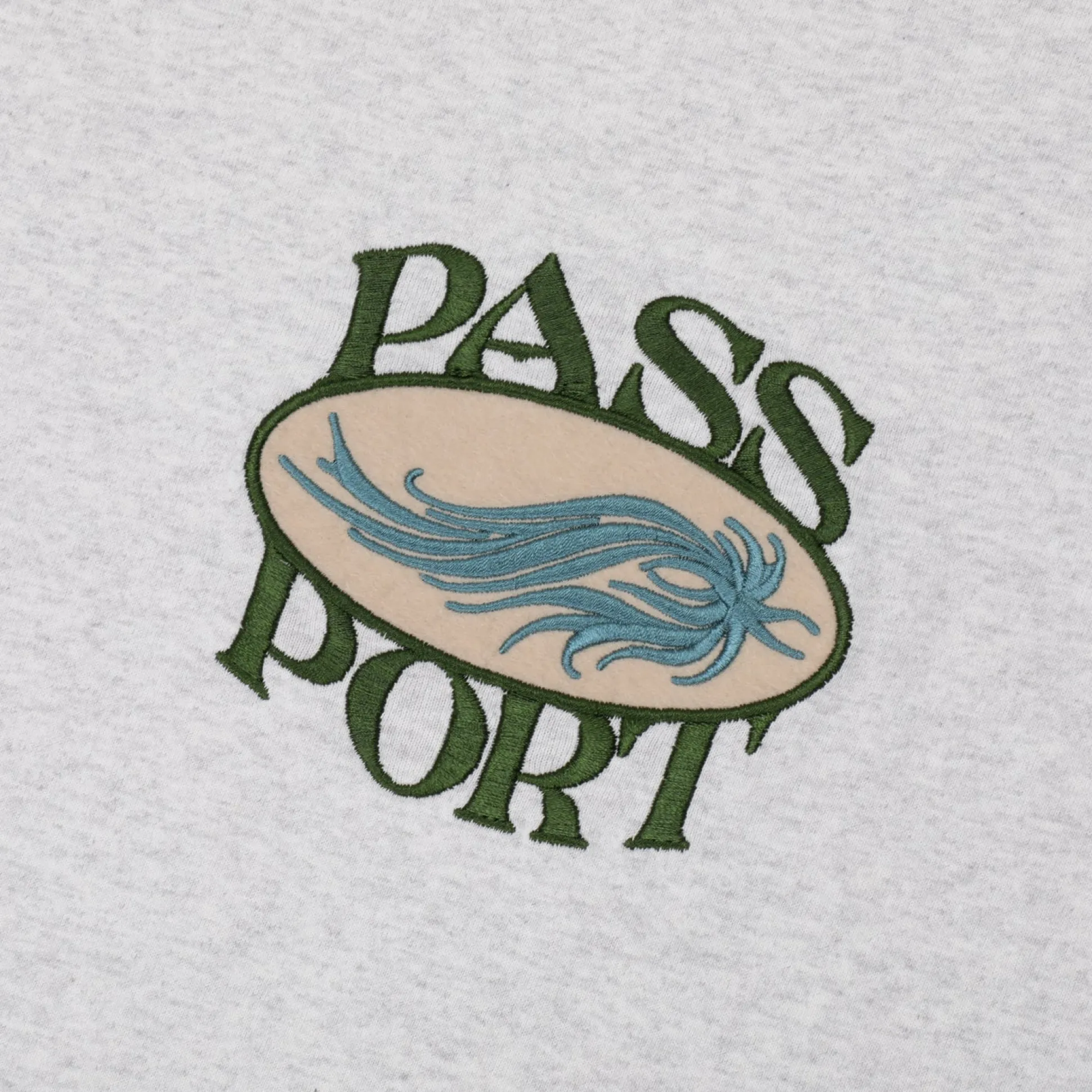 Introducing Range #44: The Pass-Port Sunspot Tee in ash is made from 100% cotton and features a directly embroidered graphic on the front. It offers the signature Pass-Port fit.