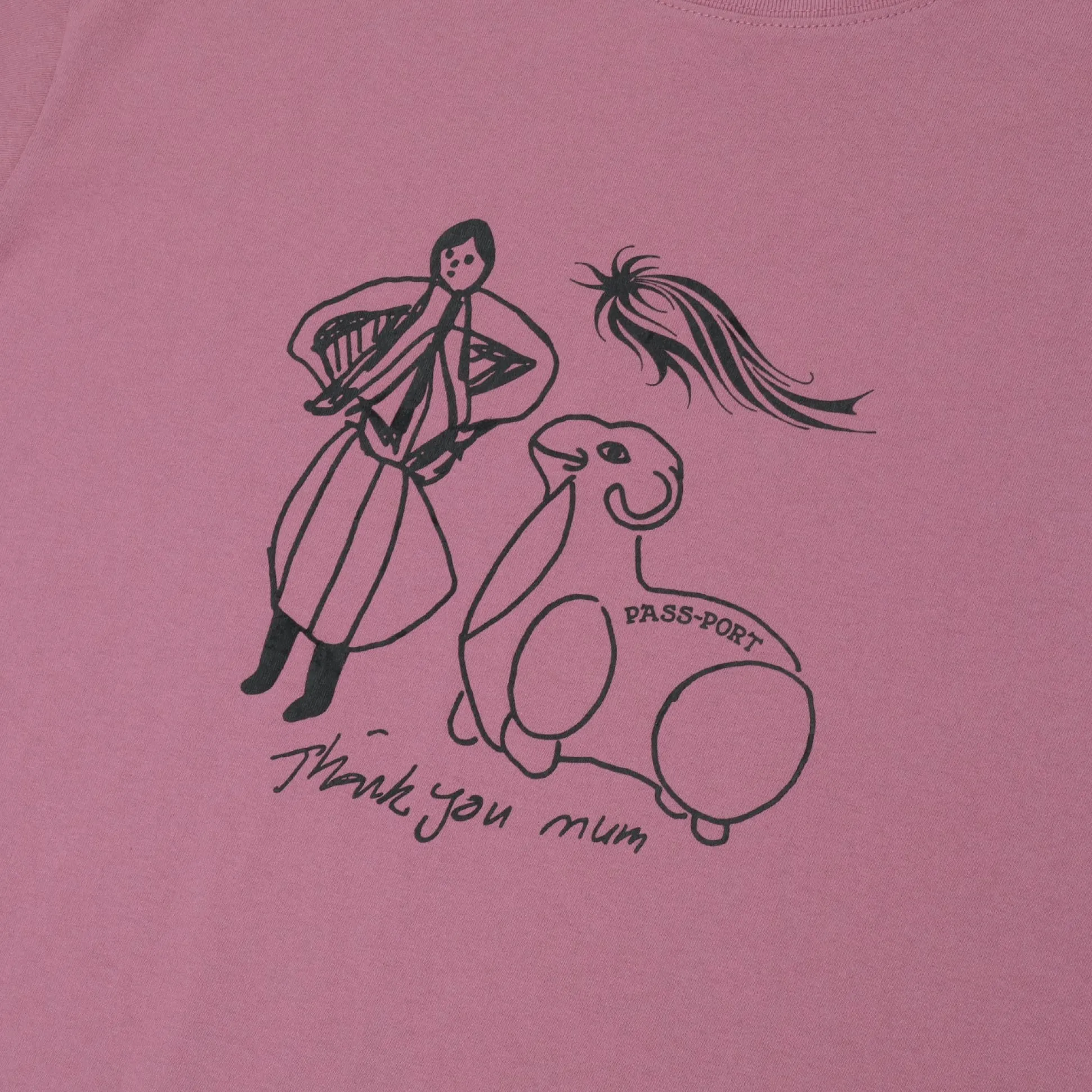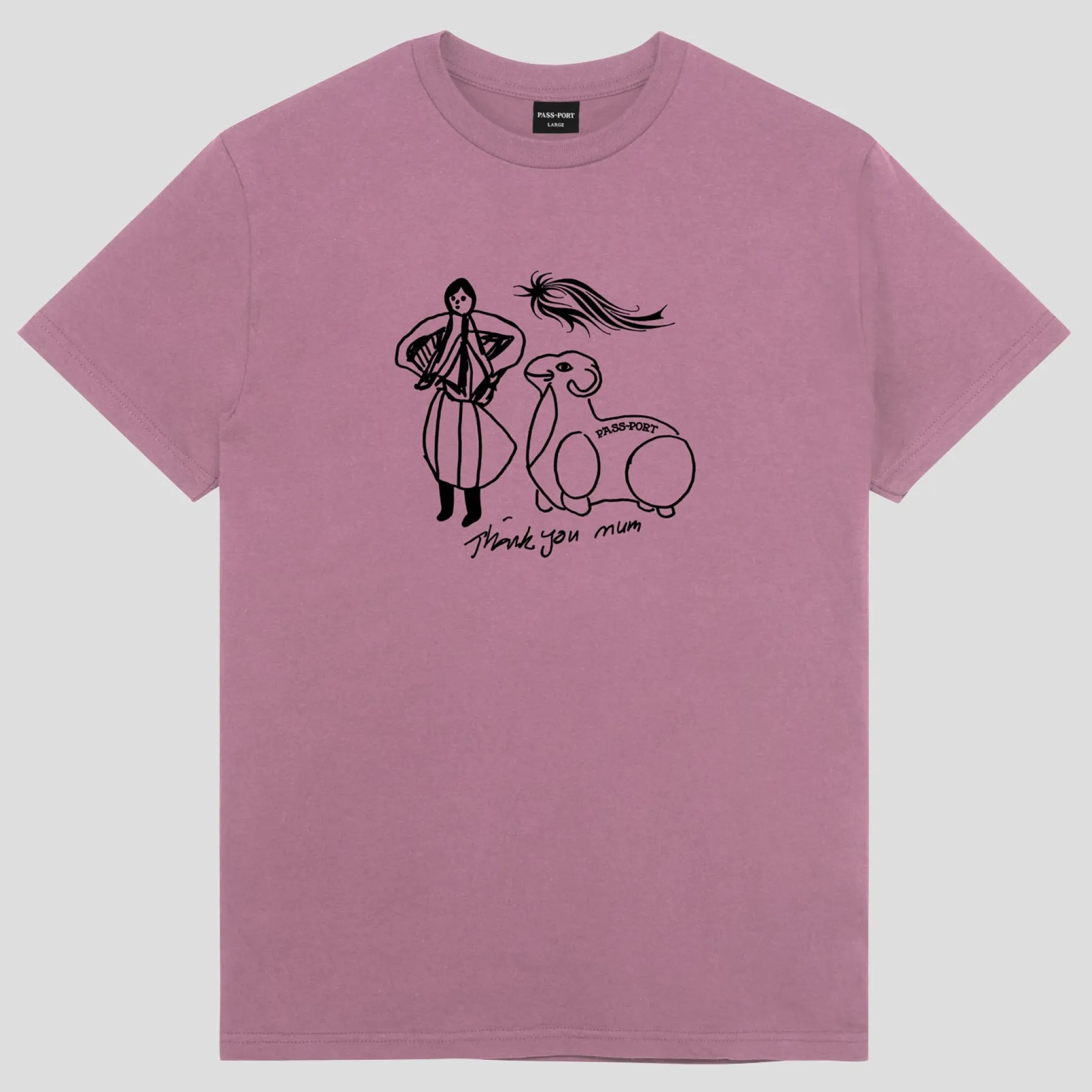 Introducing Range #44: The Pass-Port Thank You Mum tee in washed berry is made from 100% cotton and features a screen printed graphic on front. It offers the signature Pass-Port fit.