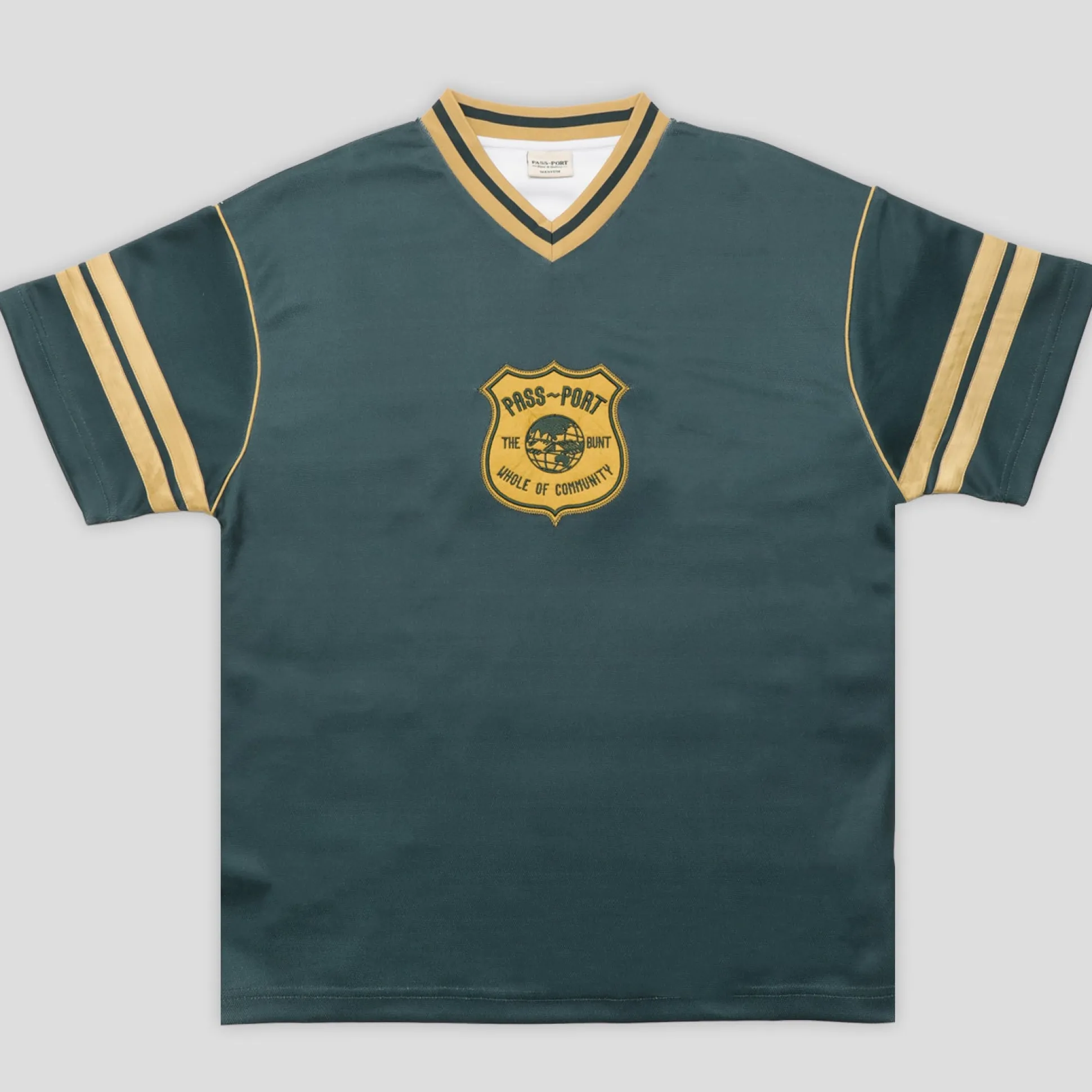 As worn by the Pass~Port Basketball team at The Bunt Jam Melbourne 2024 event, get your shots up in our basketball warm shirt. The Pass~Port Basketball shirt is made from 100% polyester mesh with felt appliqué embroidery on front and satin stripes on the sleeve.