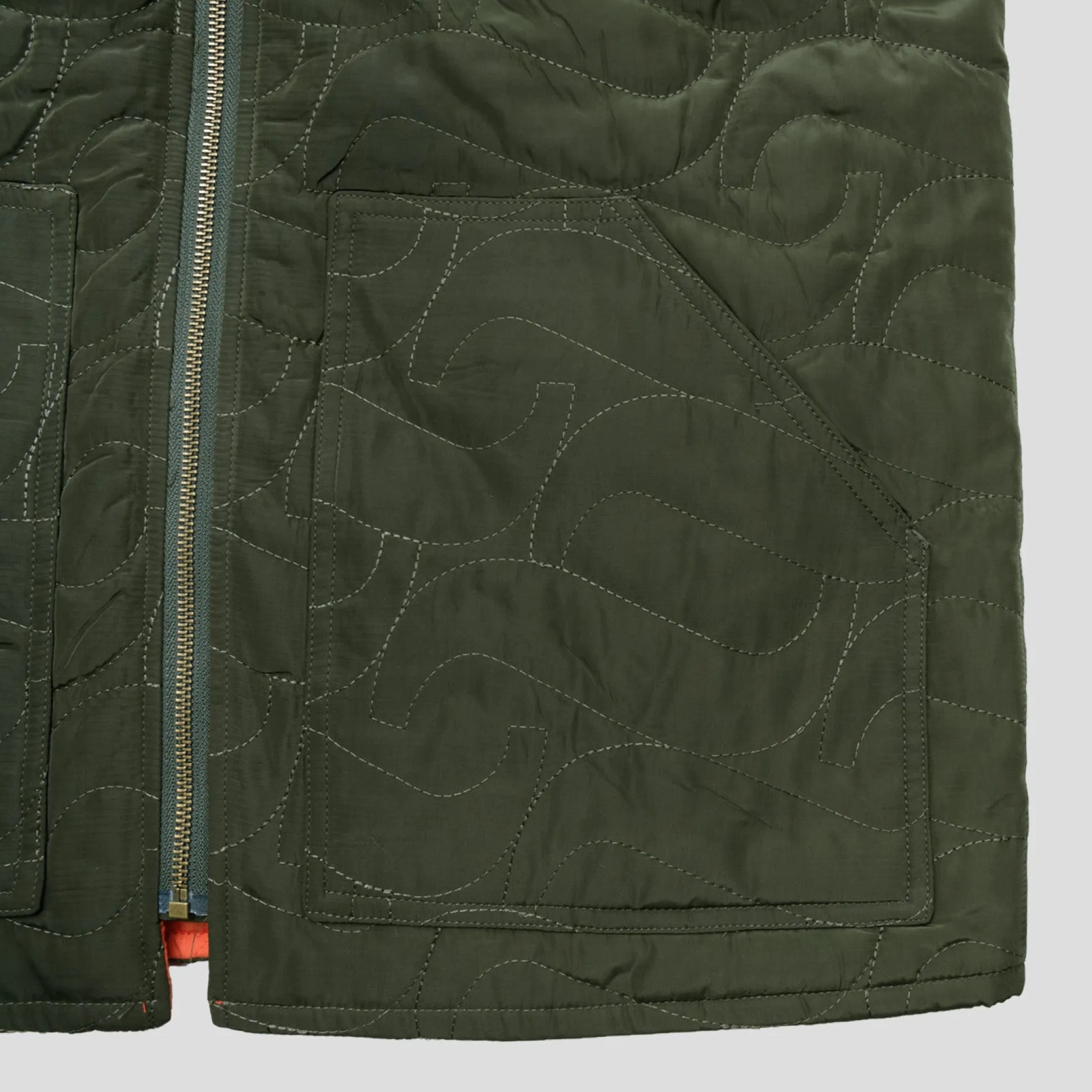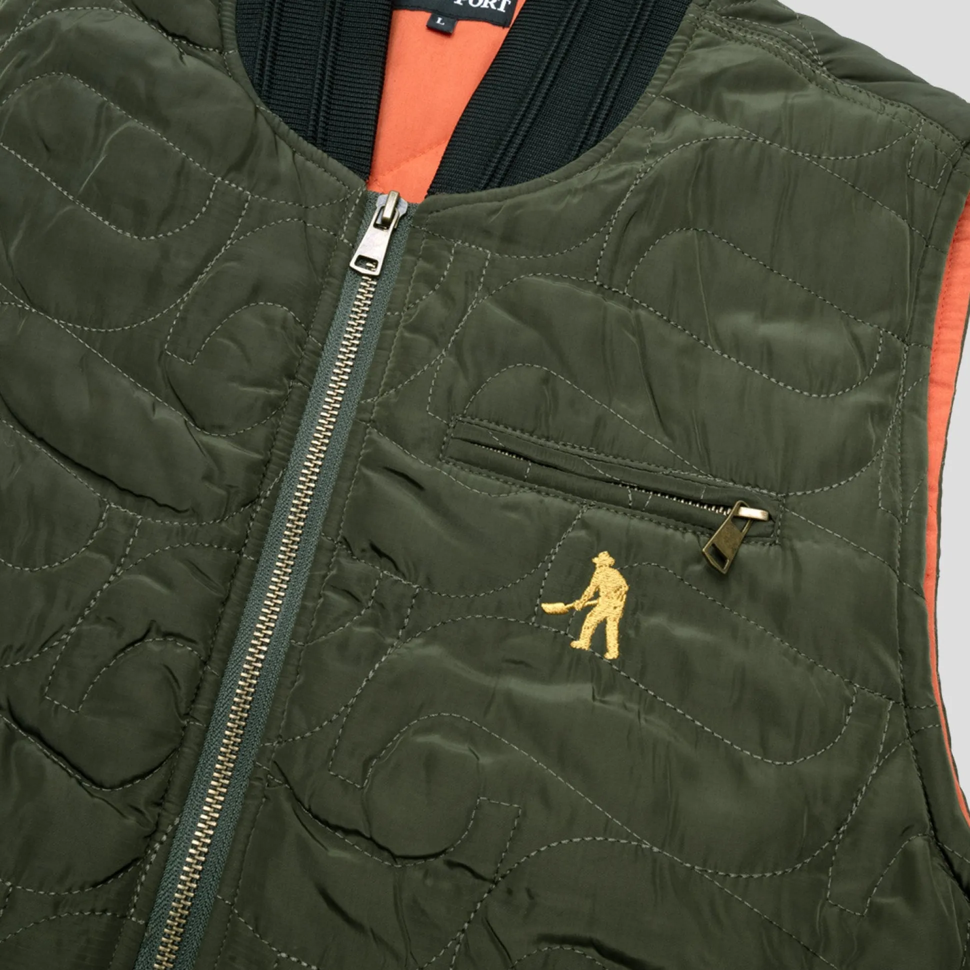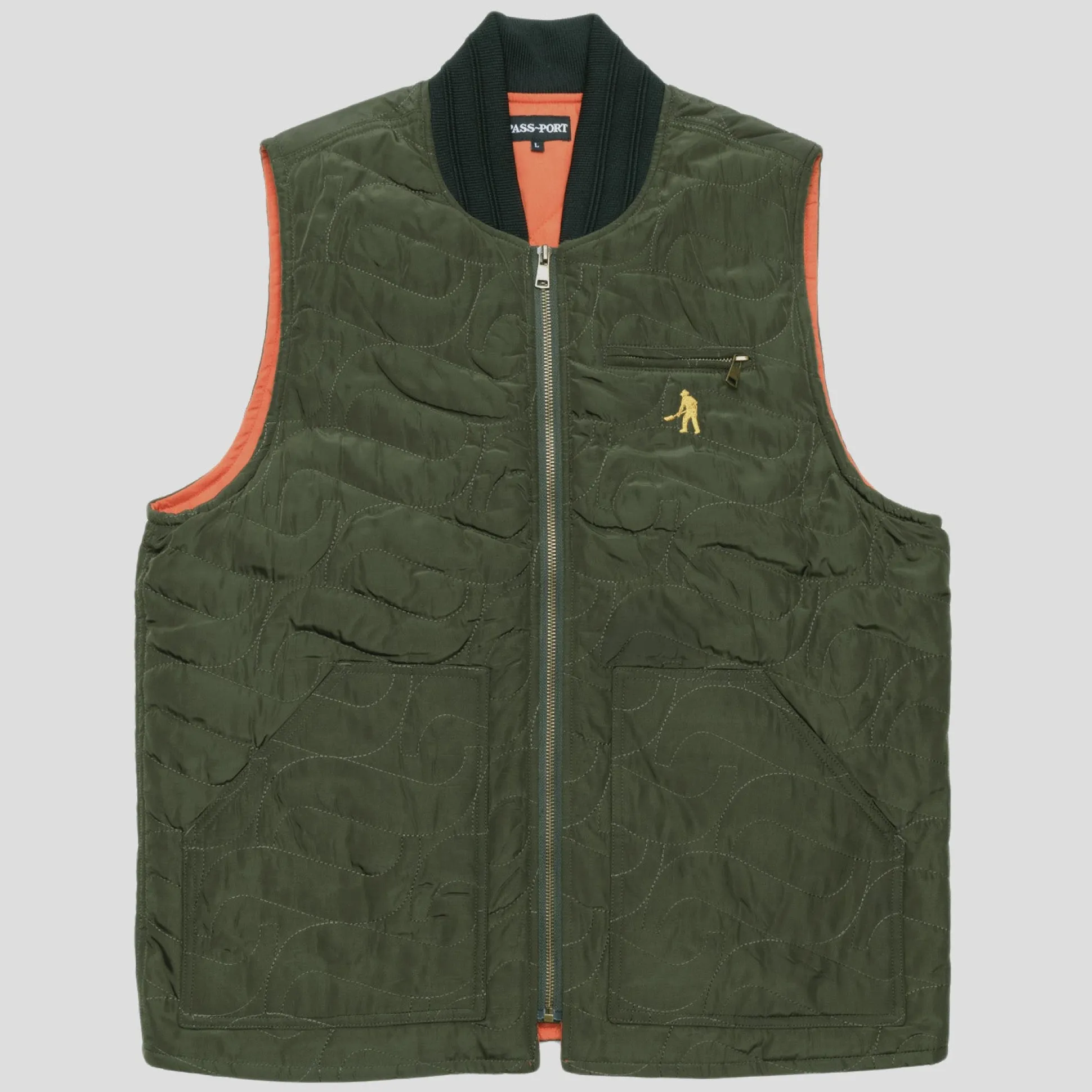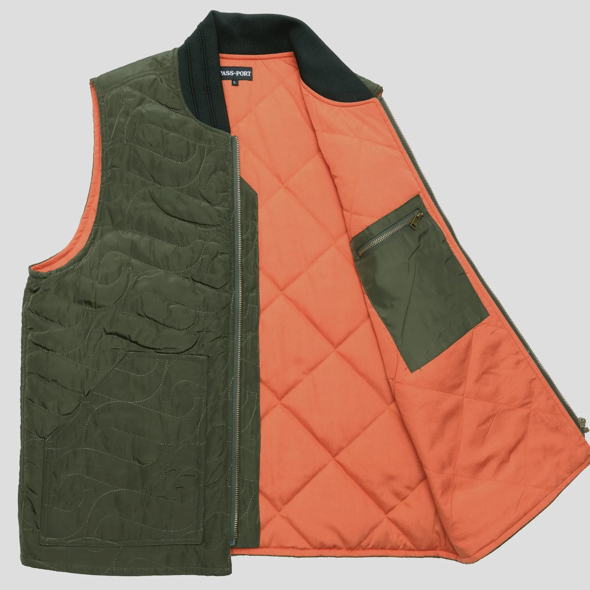 Pass~Port Tilde Puff Packers vest in forest green from range #39. Made from 100% polyester outer and 100% cotton liner. The Tilde Puff vest is lined with cotton poplin and features 3 external pockets and 1 internal pocket.