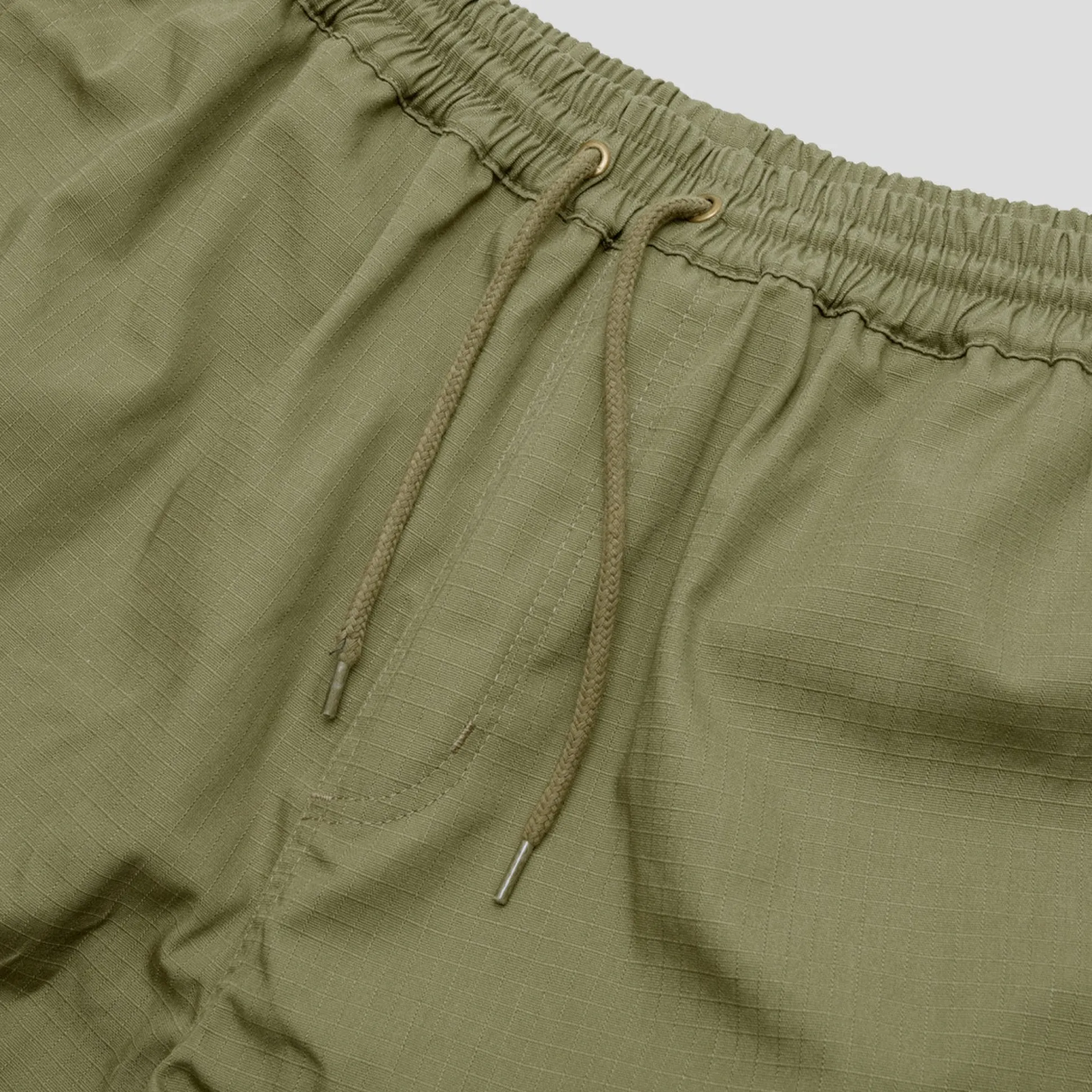 Pass~Port Transport Ripstop Workers short in olive from range #39. Made from 100% cotton ripstop. The shorts also have embroidery patch and draw string adjustment.