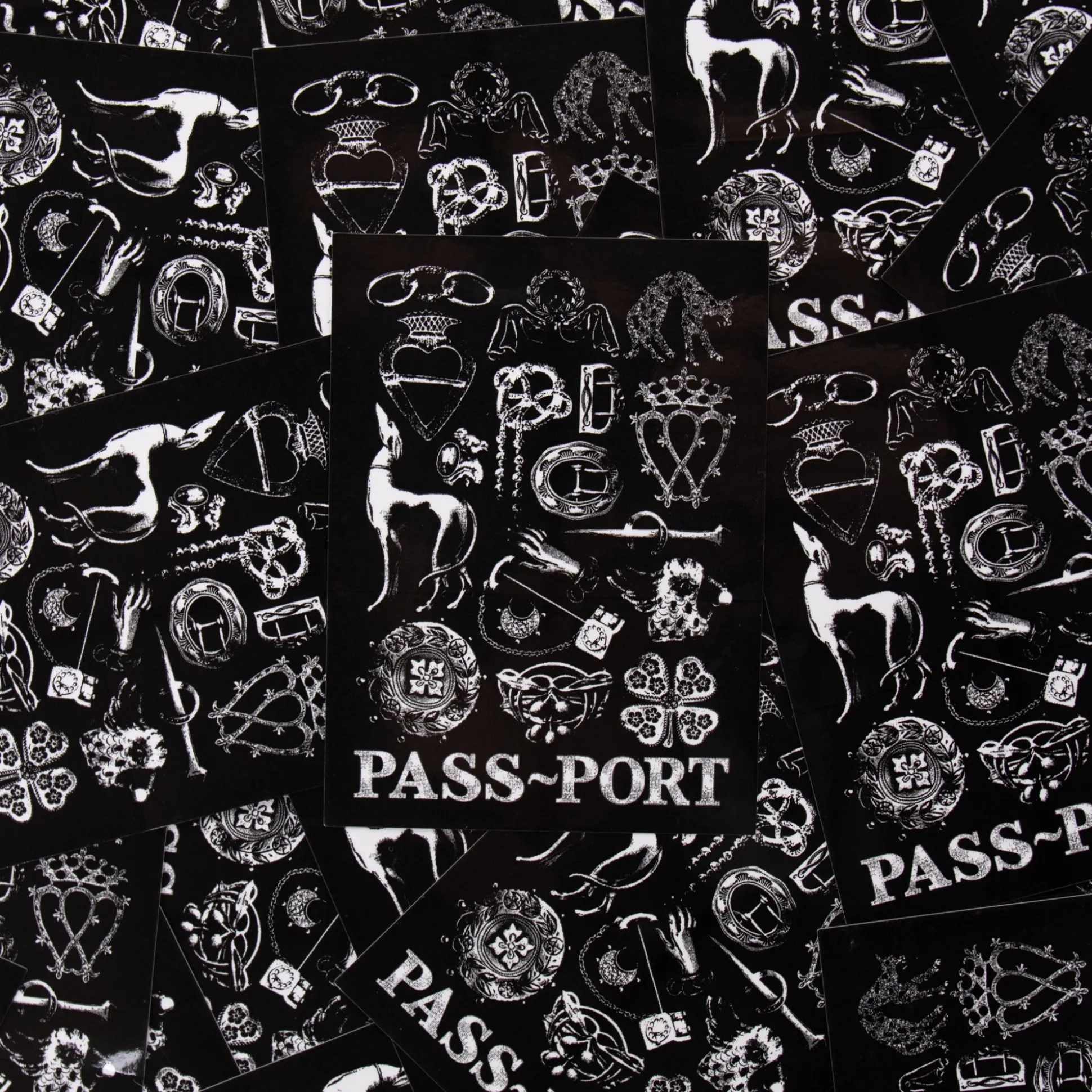 Pass~Port ‘Trinkets’ sticker, the sticker features black and white trinkets with vinyl backing.