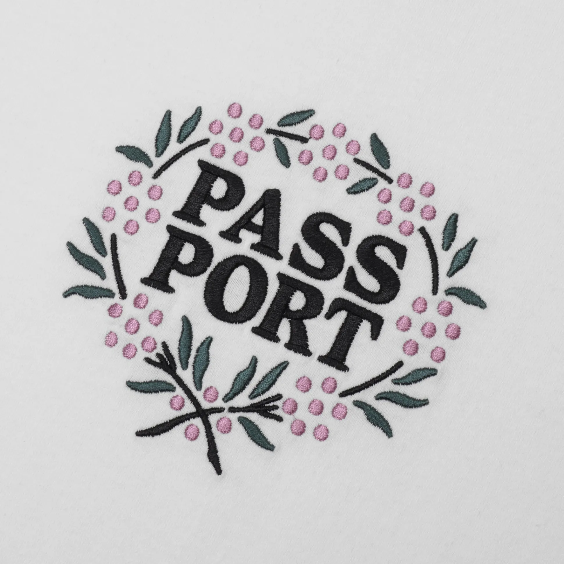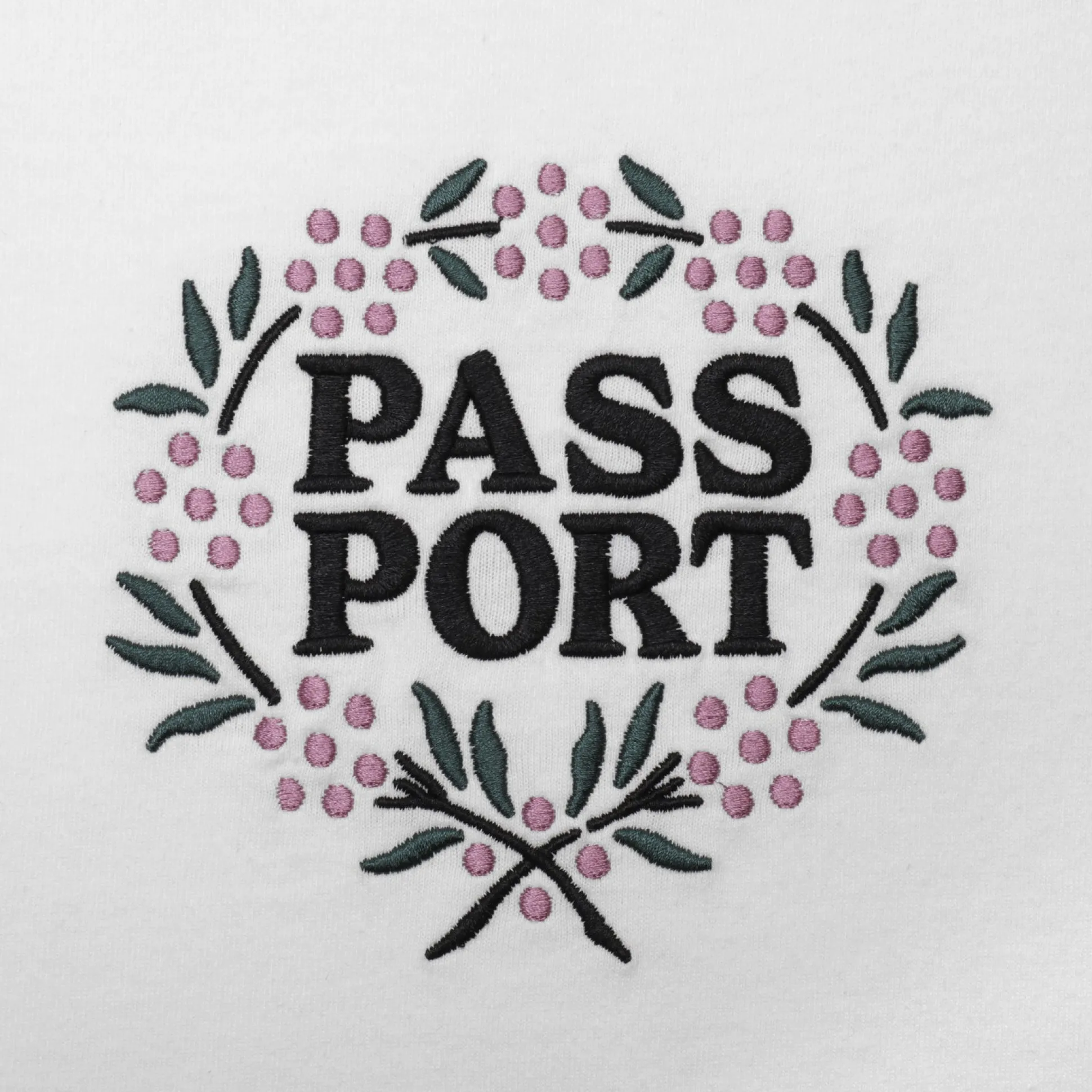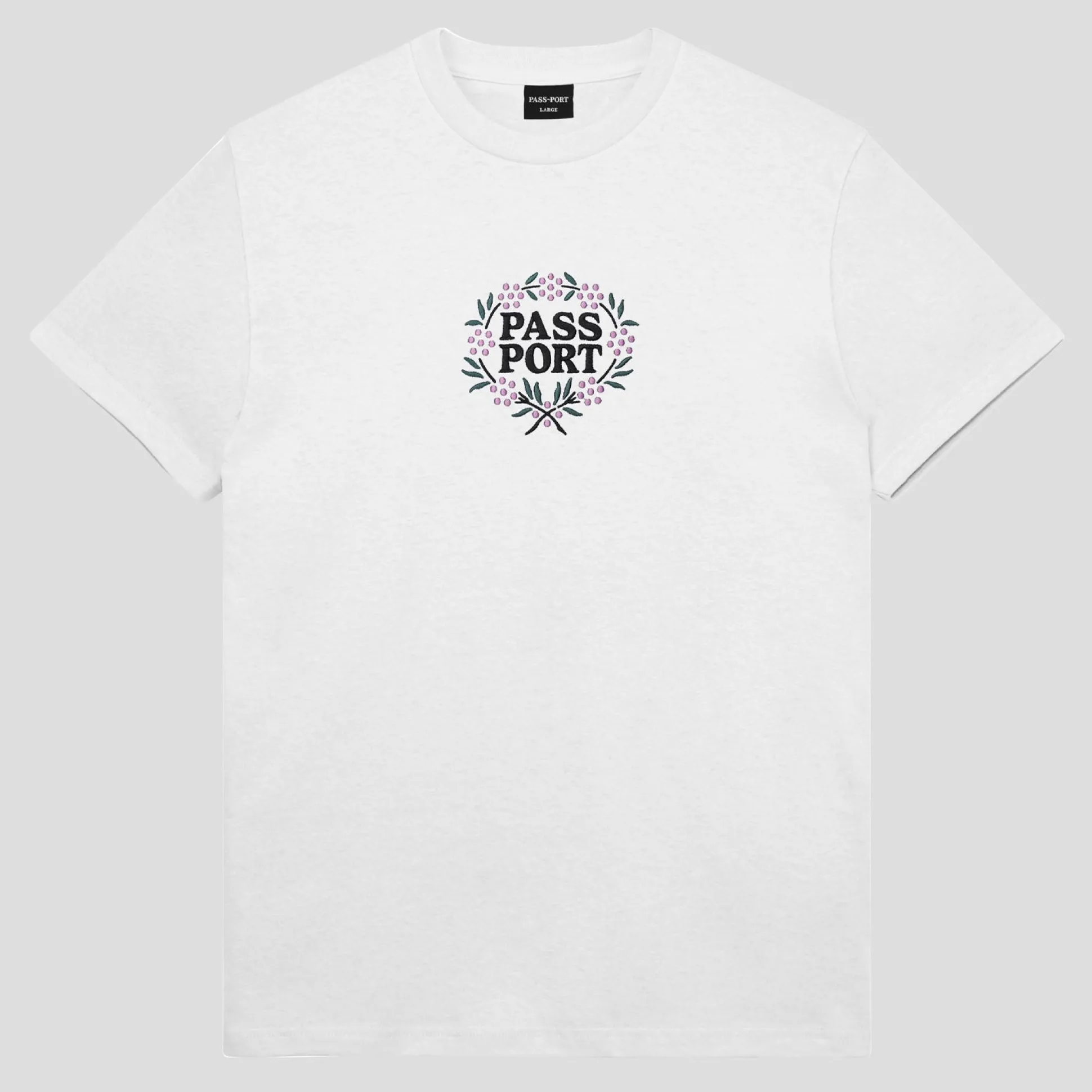 Pass~Port Wattle Tee in white from range #42. The Pass~Port t-shirt is made from 100% cotton and features embroidery print on front and is finished in the classic Pass~Port tee fit.