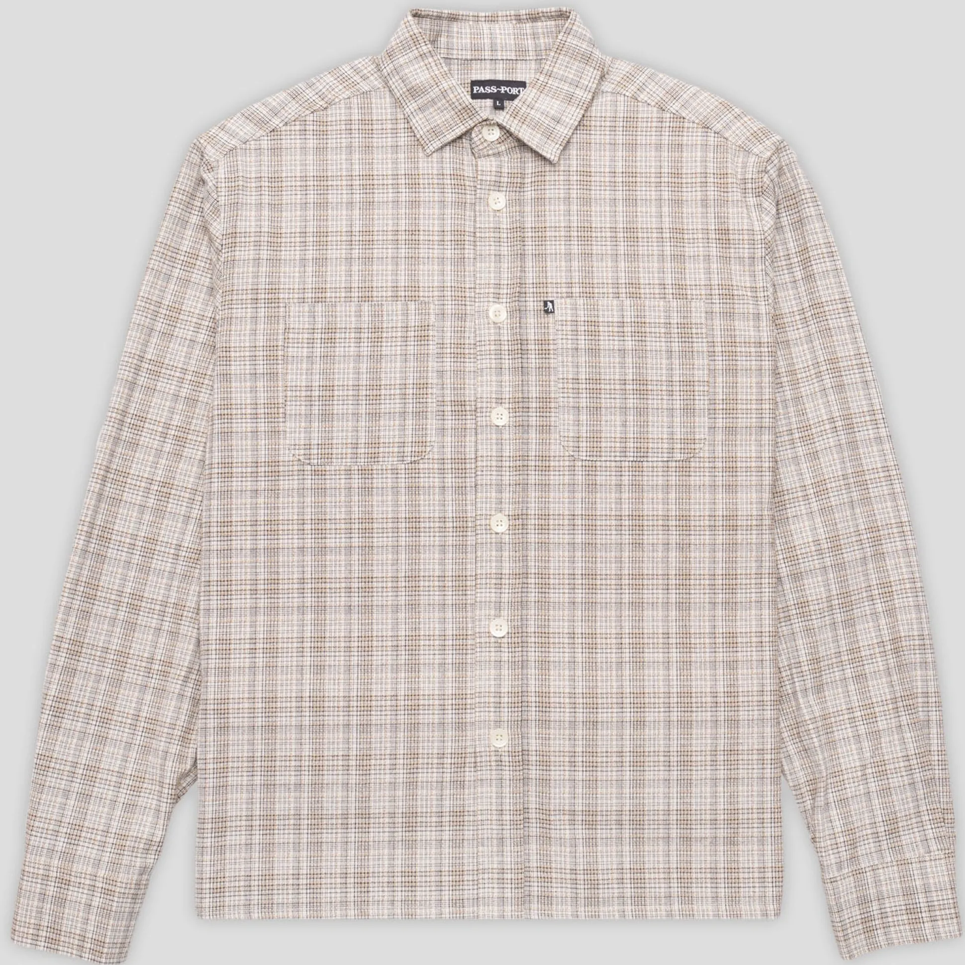 Pass~Port Workers Check Long Sleeve Shirt from range #43. The Workers Check button up shirt is made from 100% cotton and features single pocket on front with recycled buttons.