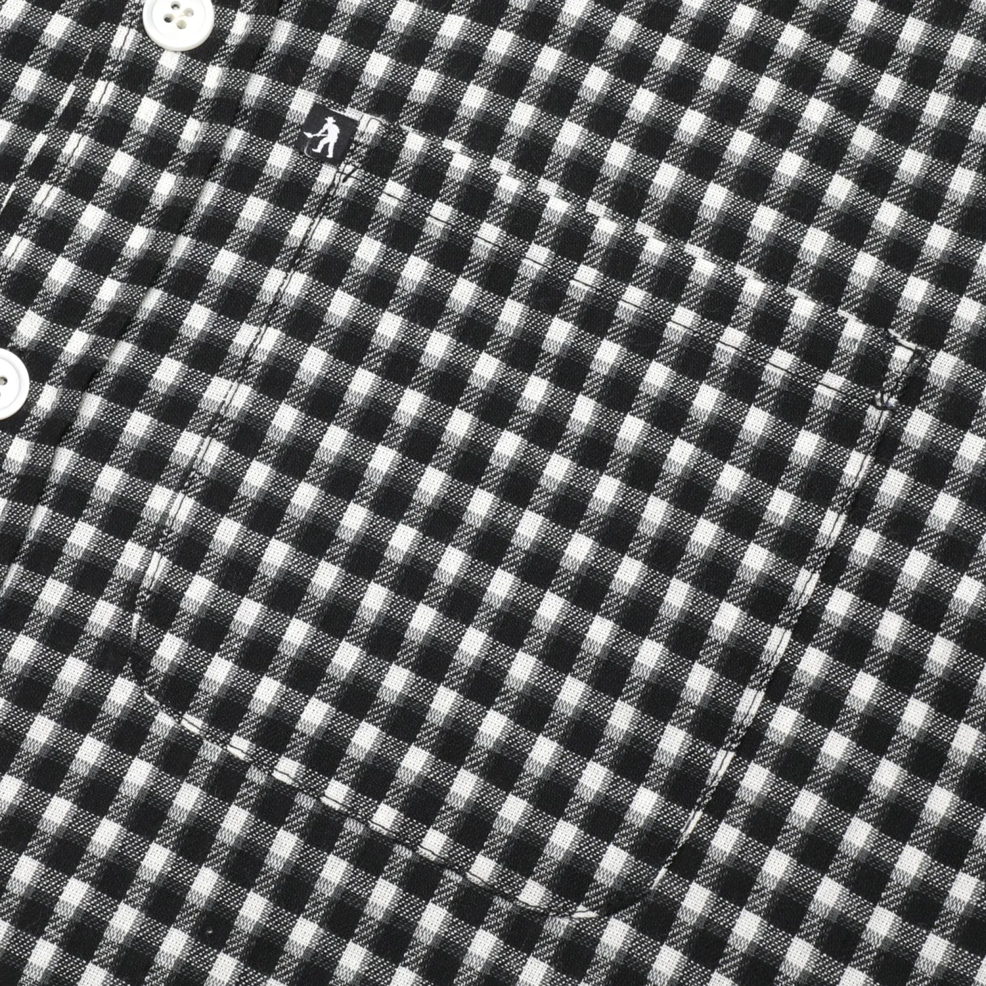Pass~Port Workers Check Shirt Long Sleeve in black from range #38. Made from 100% cotton with recycled buttons and single pocket on front.