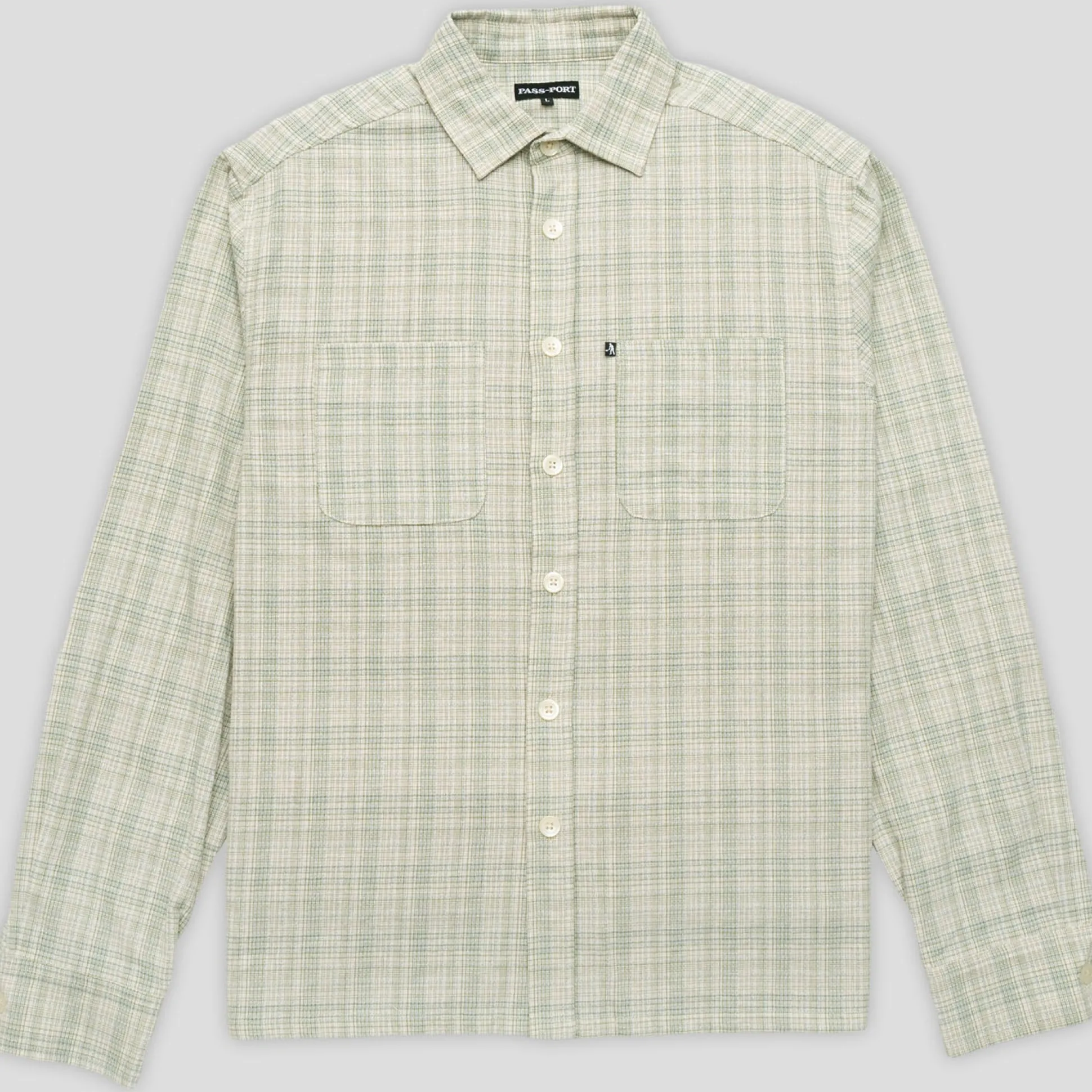 Pass~Port Workers Check Long Sleeve Shirt from range #43. The Workers Check button up shirt is made from 100% cotton and features single pocket on front with recycled buttons.