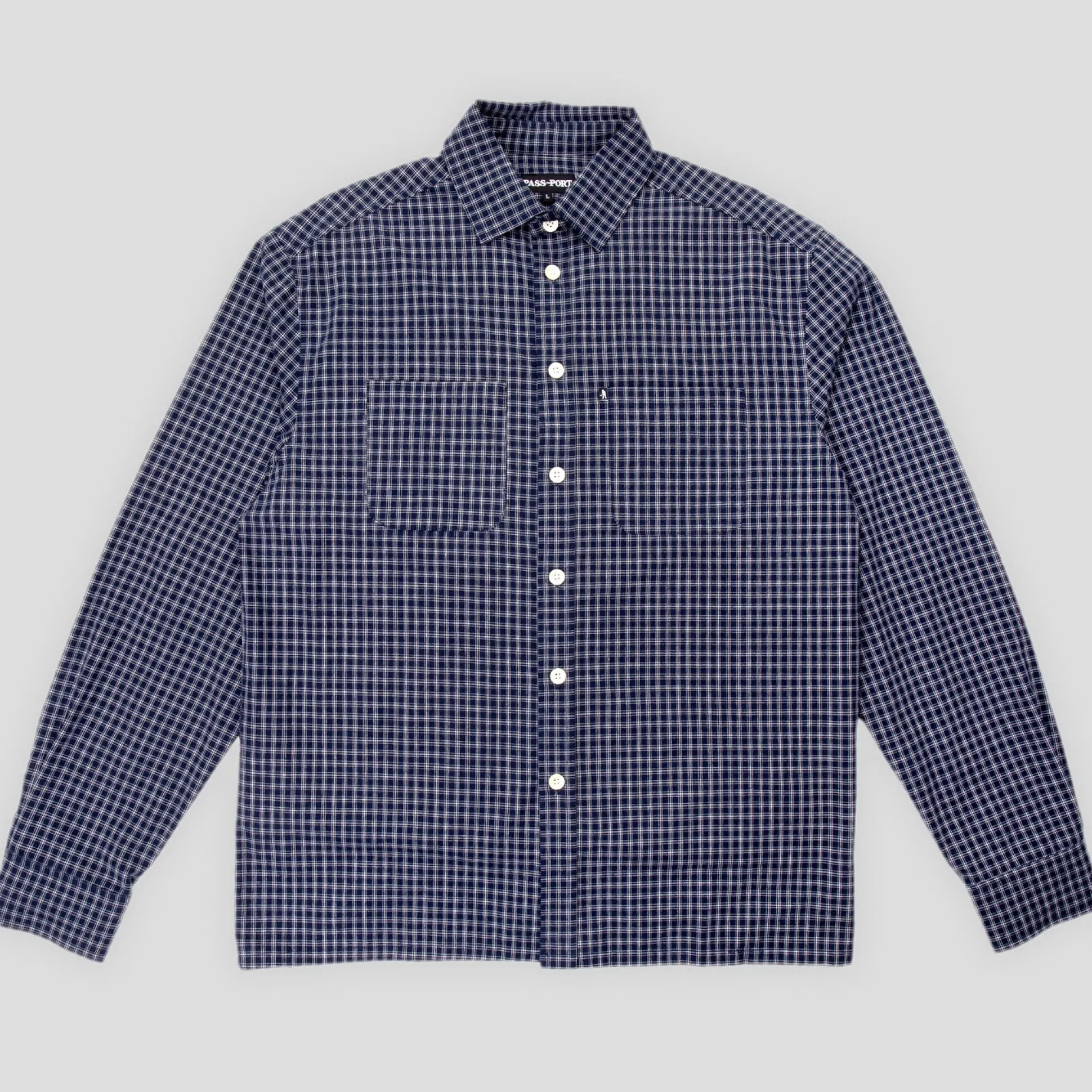 Pass~Port Workers Check Long-Sleeve Shirt from range #42. The check shirt is made from 100% cotton and features single pocket on front with recycled buttons.