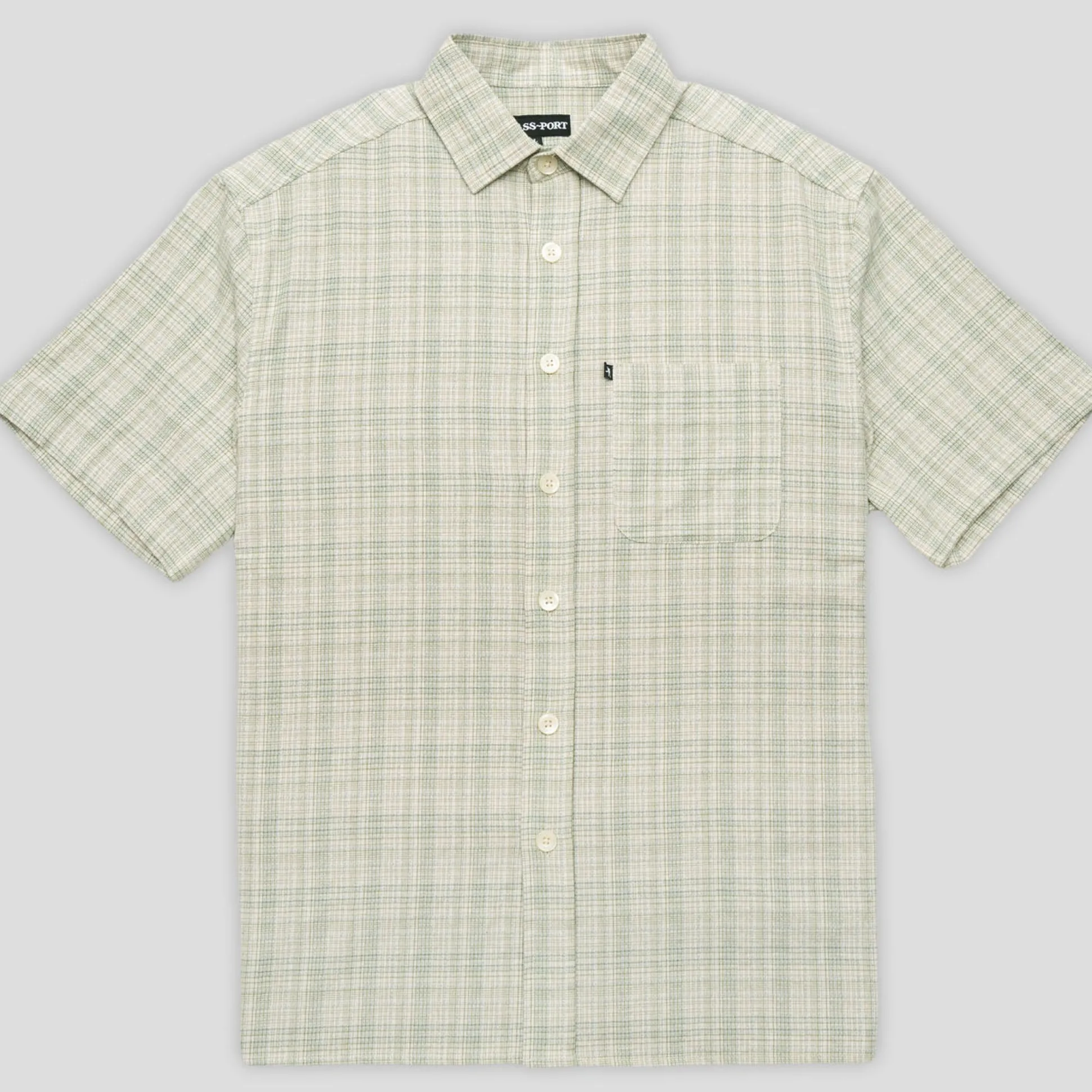Pass~Port Workers Check Short Sleeve Shirt from range #43. The Workers Check button up shirt is made from 100% cotton and features single pocket on front with recycled buttons.