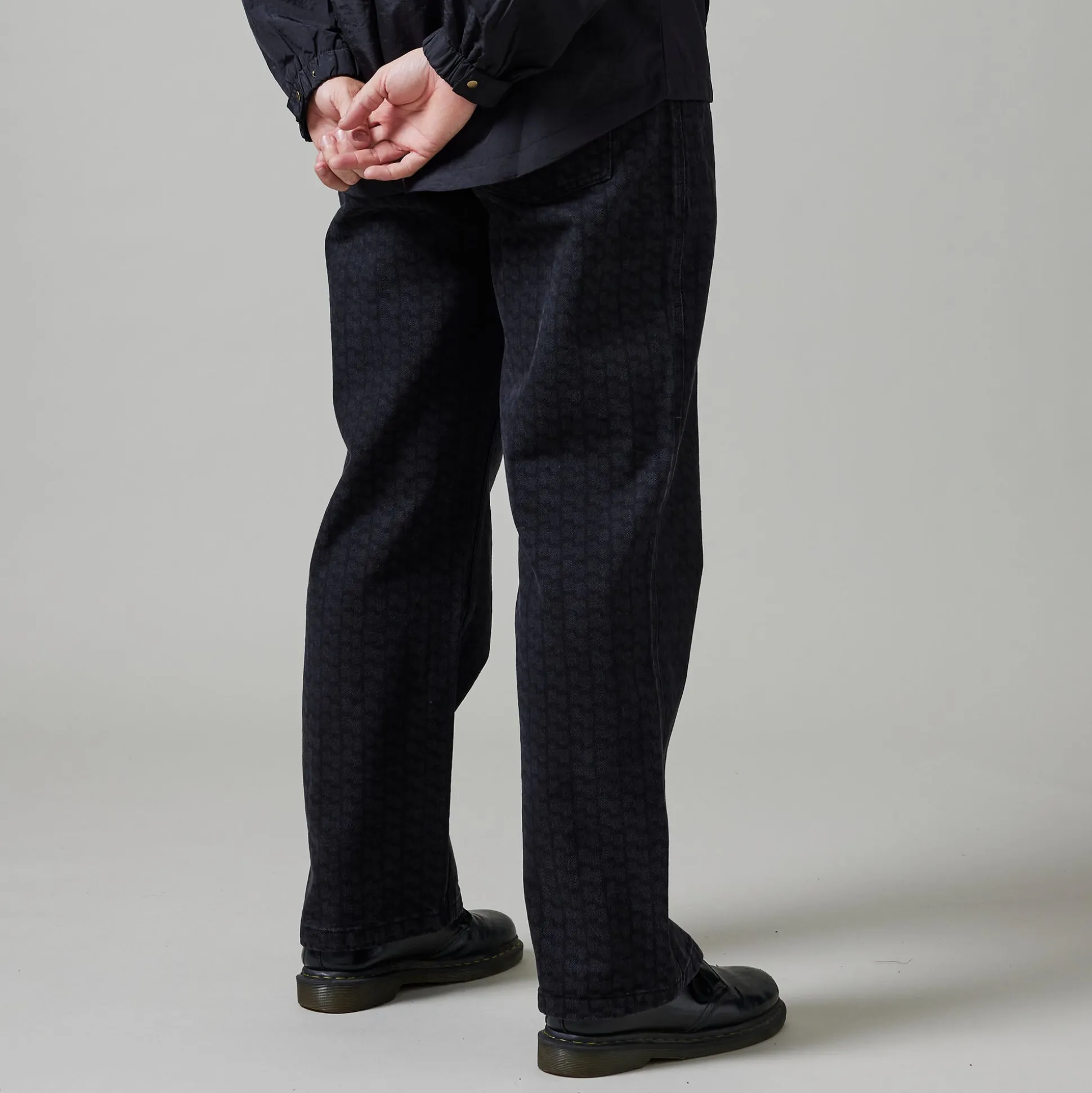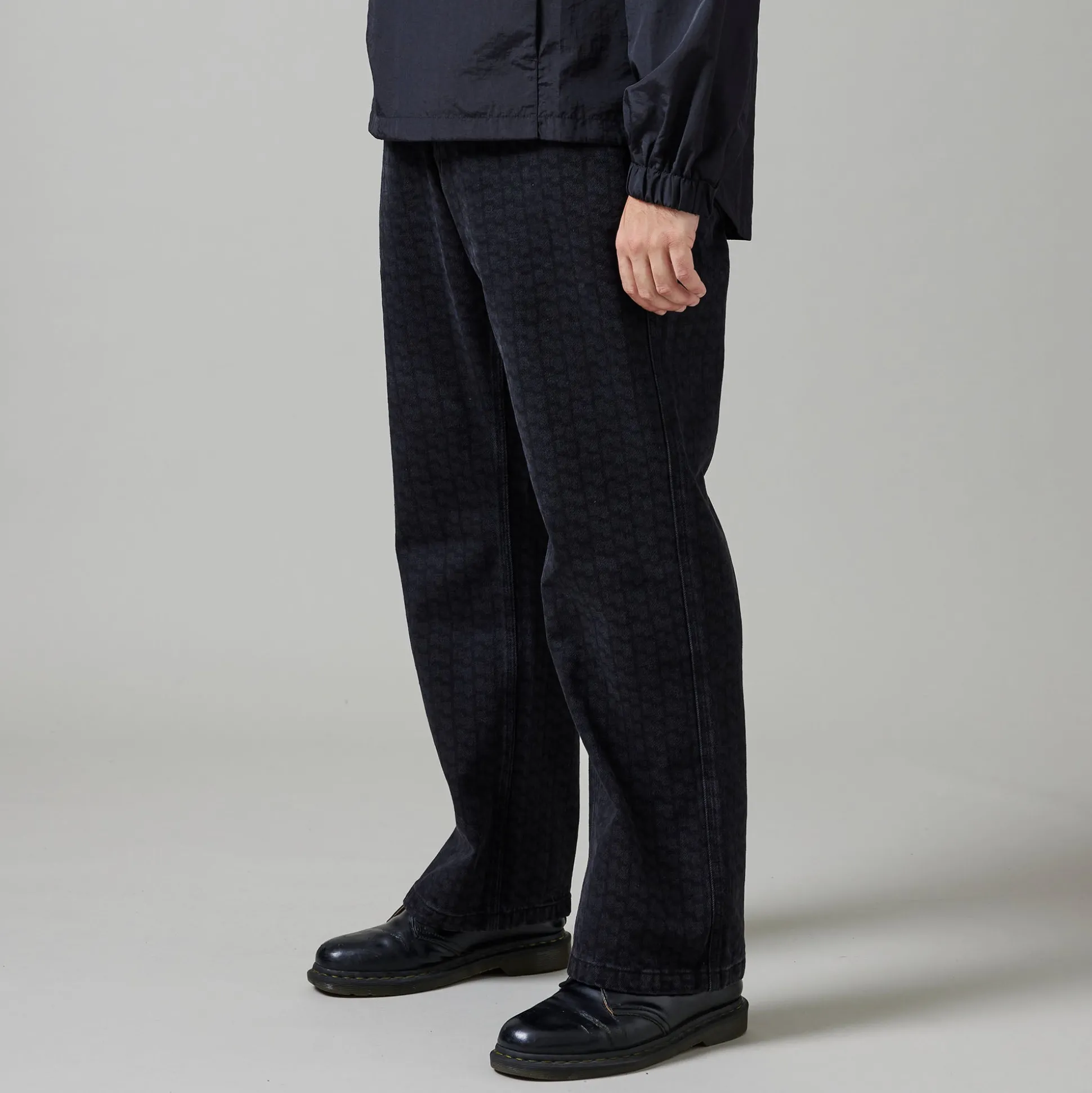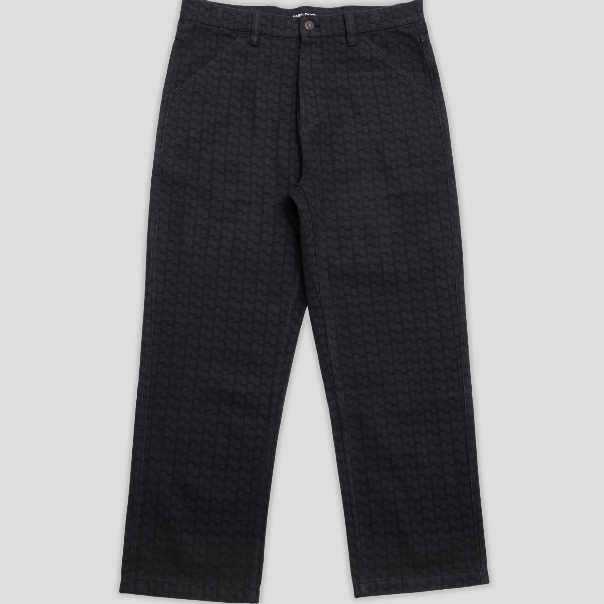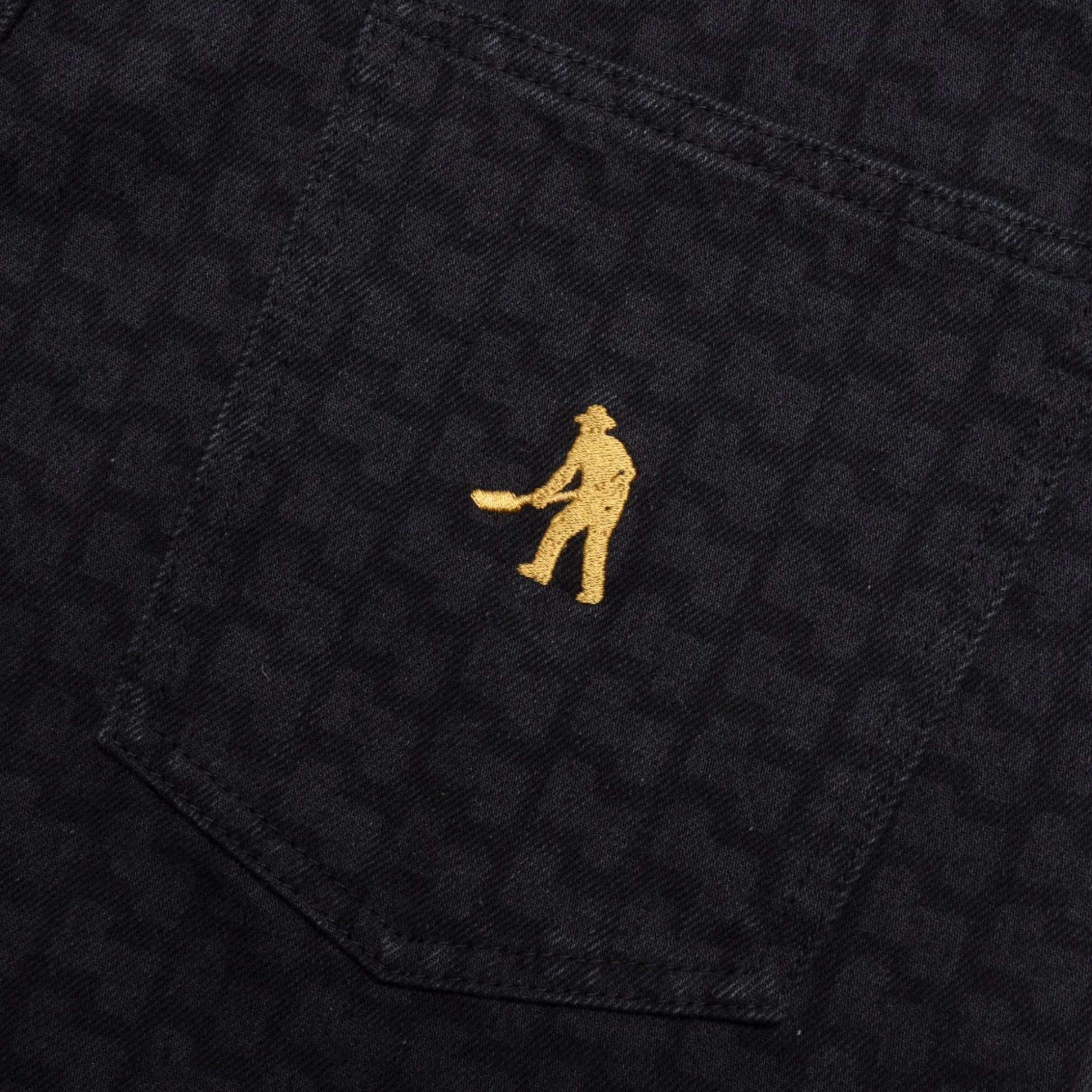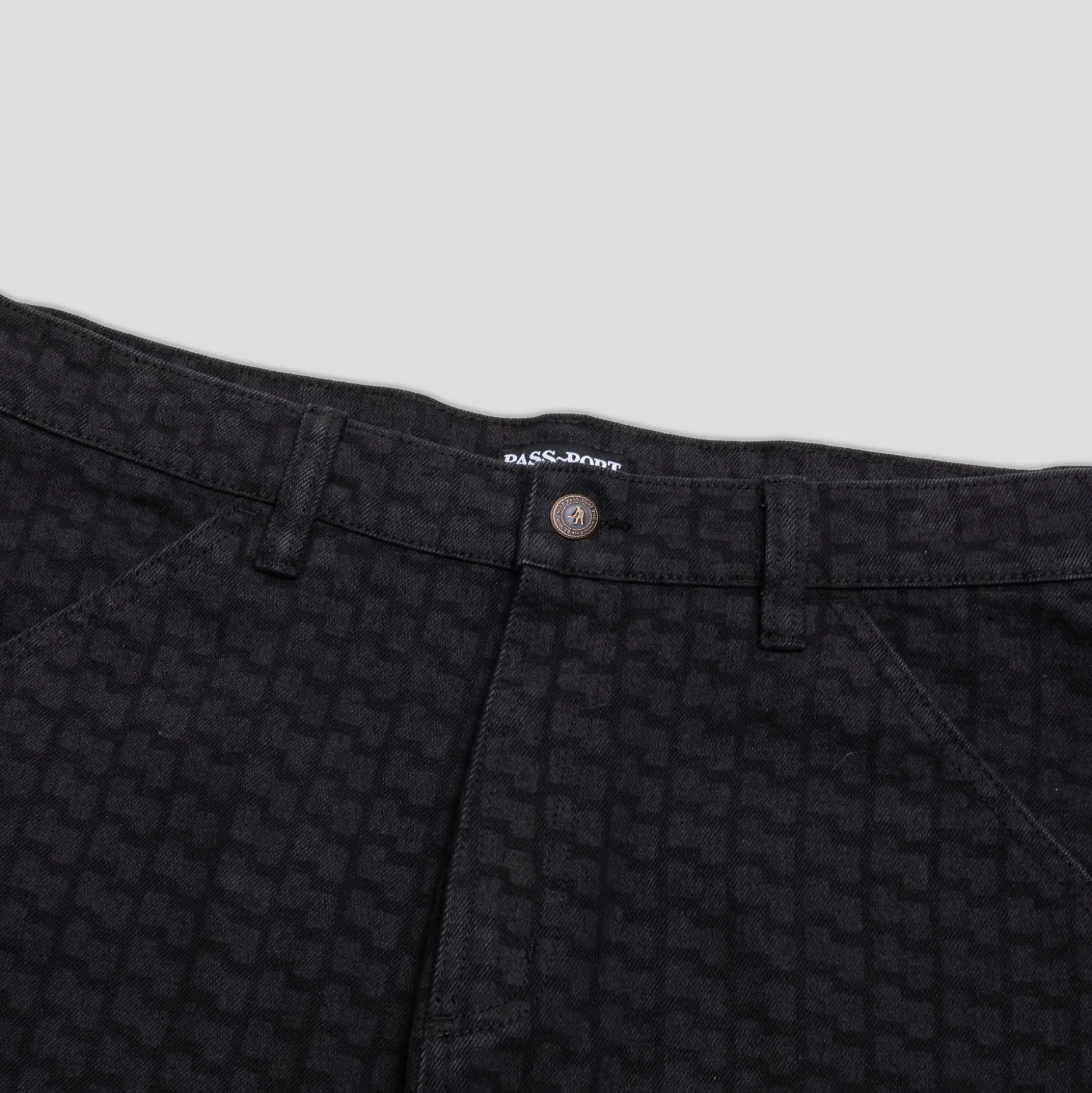 Pass~Port Workers Club denim jean in drain laser etched black from range #40. The Workers Pant is made from 100% Cotton 16oz Rigid Denim and fine yarn for extra strength. The denim jean features digger embroidery on back pocket as well a faux leather label on waist.