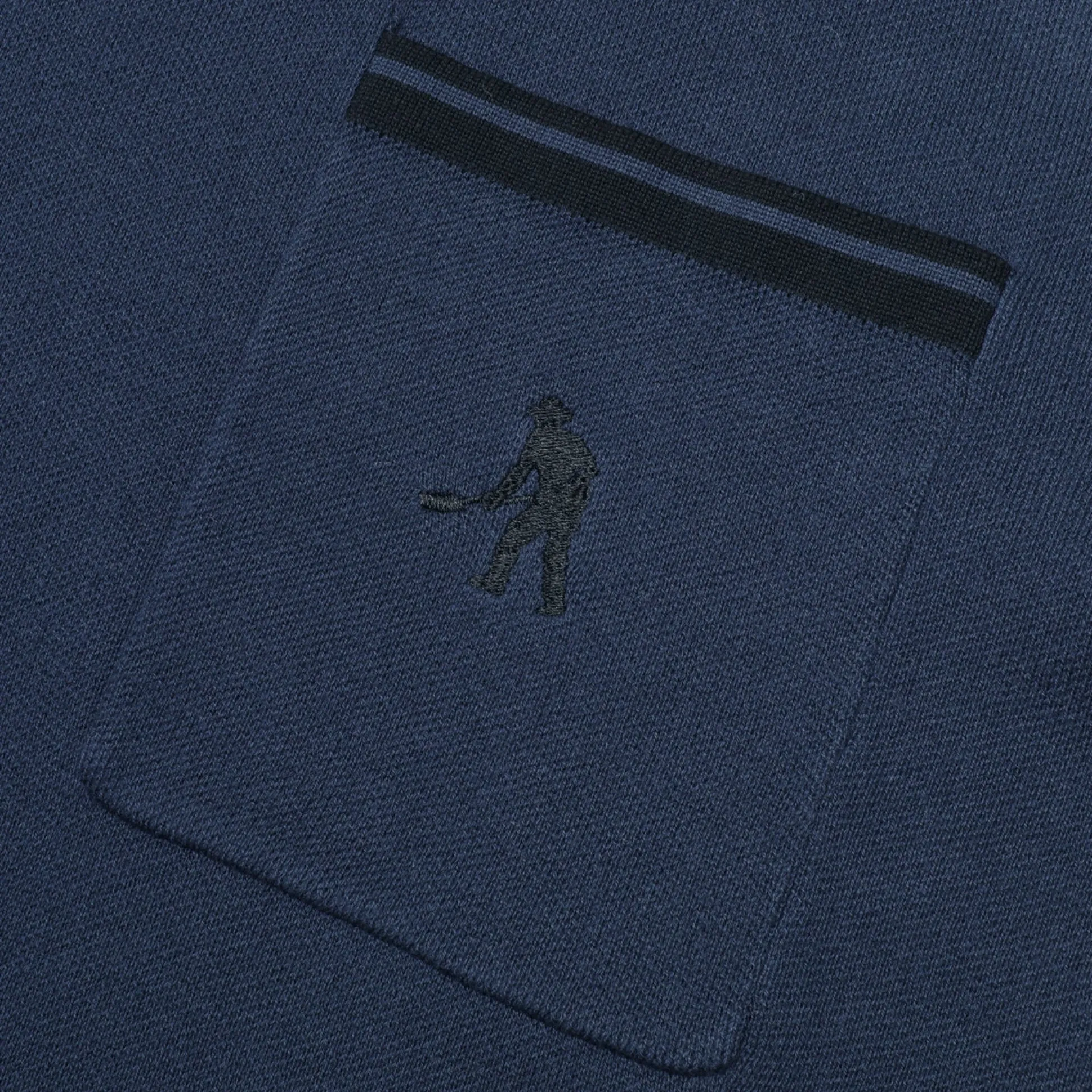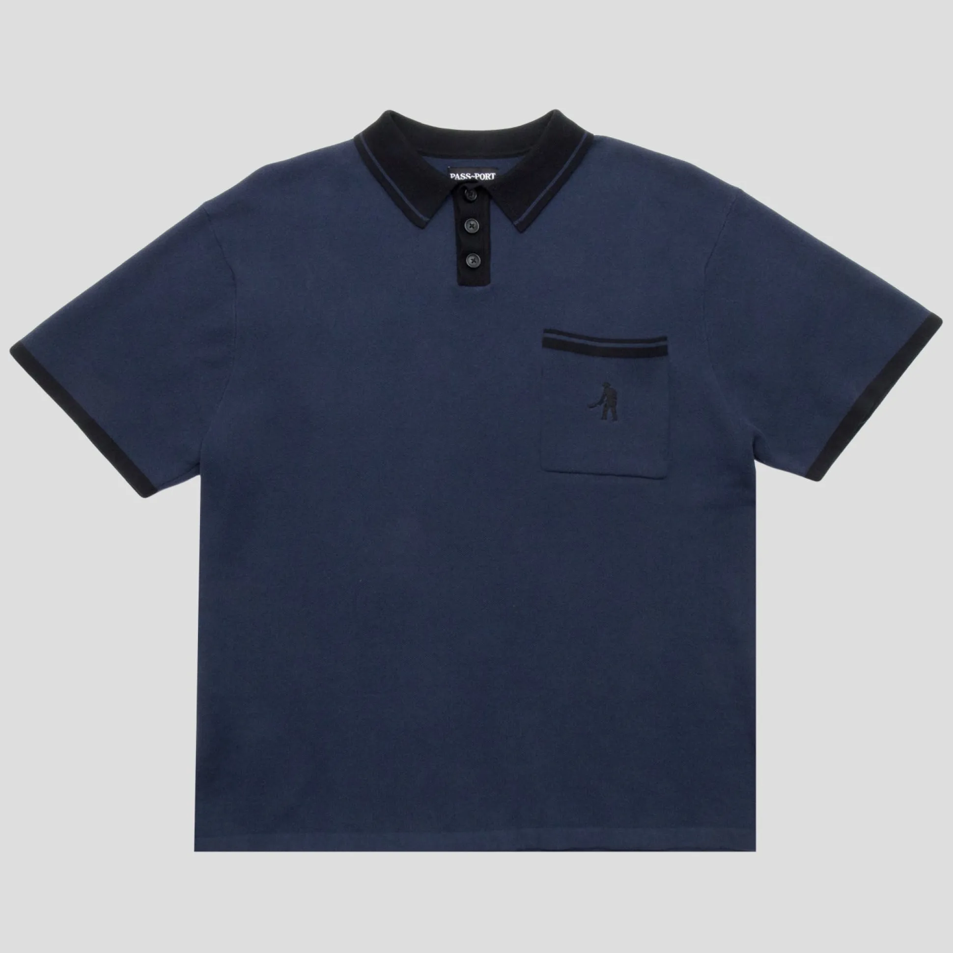 Pass~Port Workers polo shirt in navy from range #38. Made from 100% Acrylic with recycled buttons and digger embroidery on pocket.