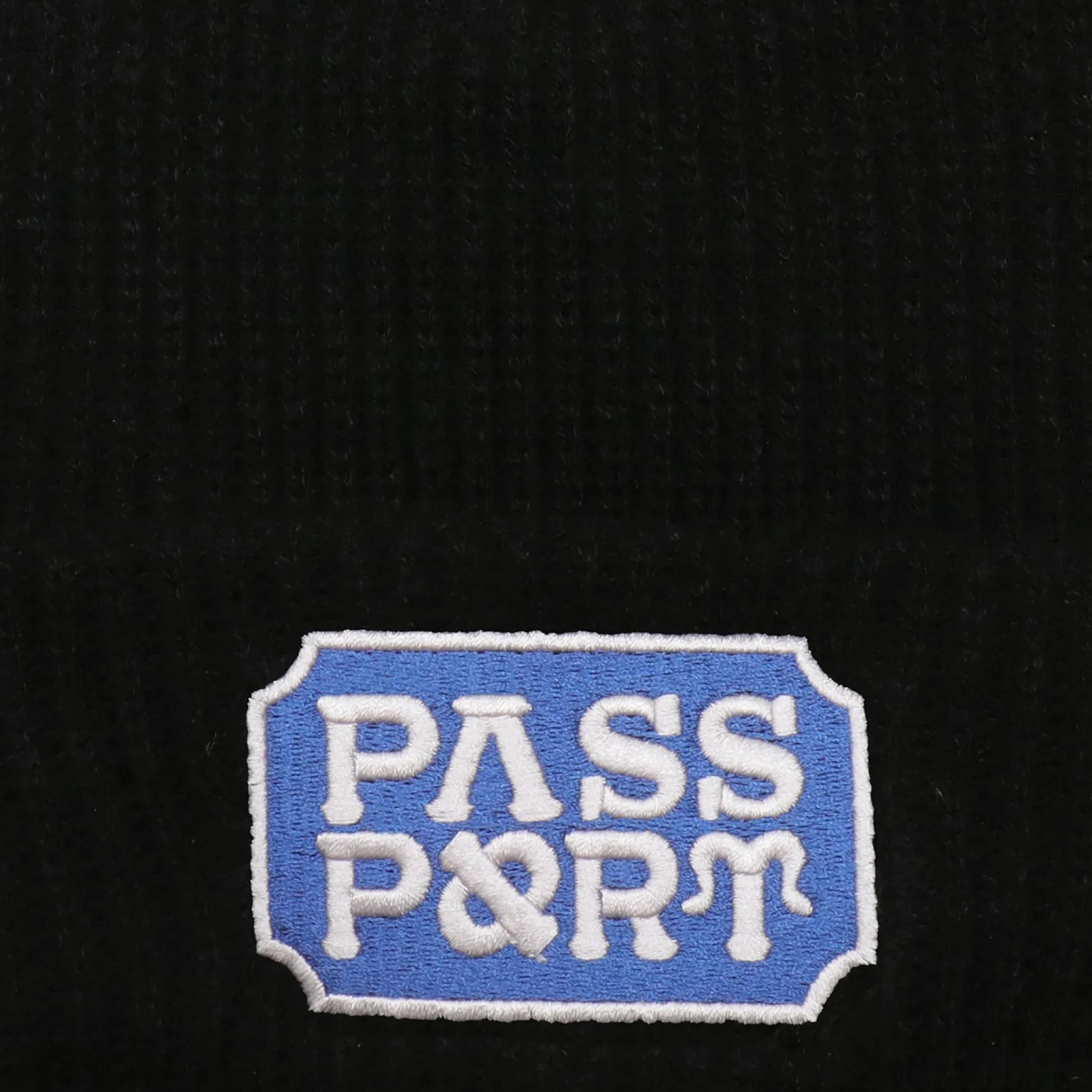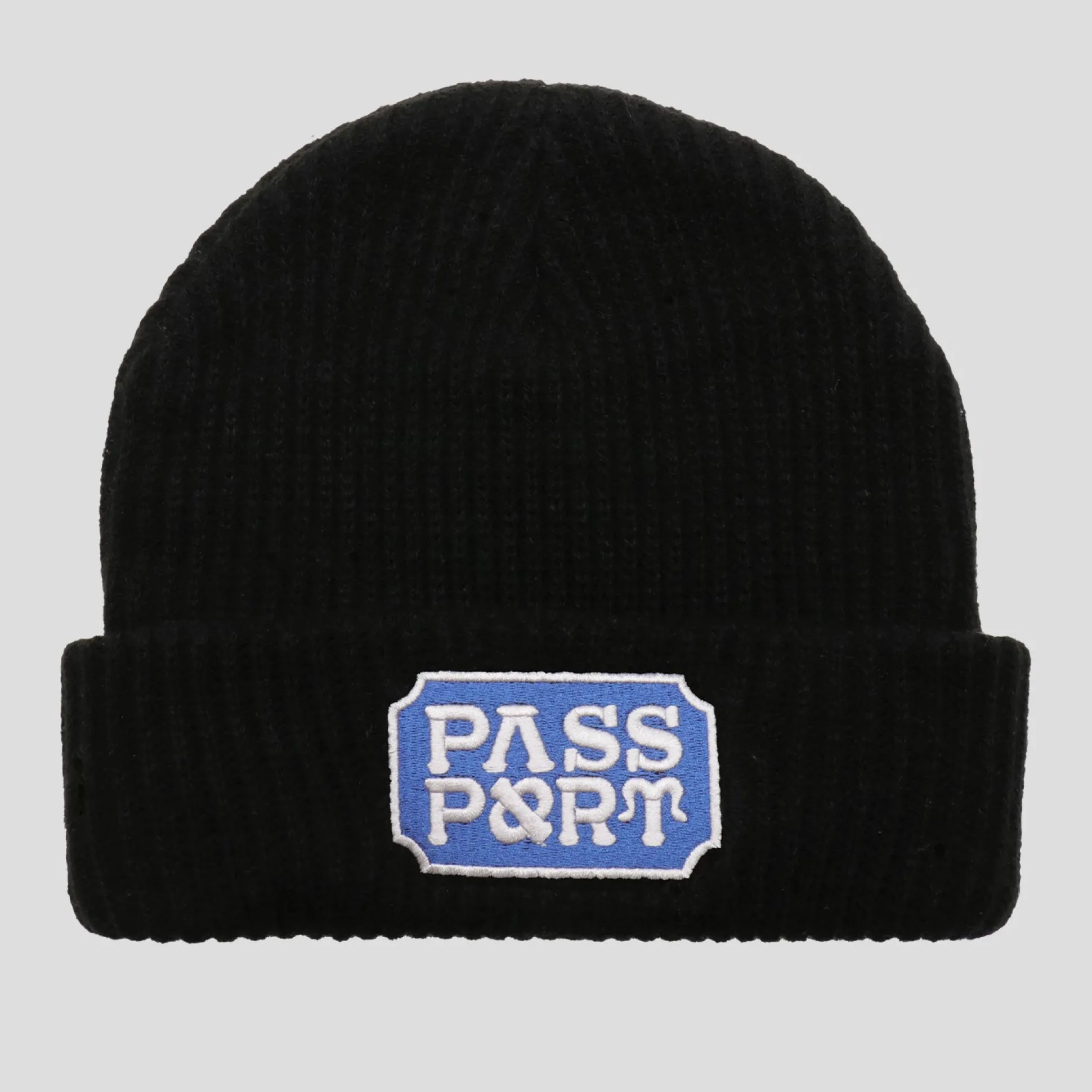 Pass~Port Yearbook Logo beanie in black from range #42. The Pass~Port beanie is made from 100% acrylic and features single embroidered patch on the front which is finished in the classic Pass~Port beanie fit.