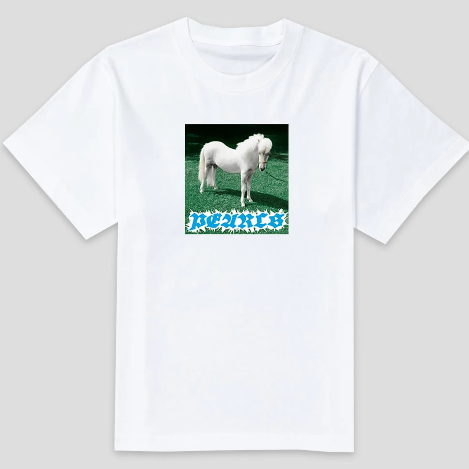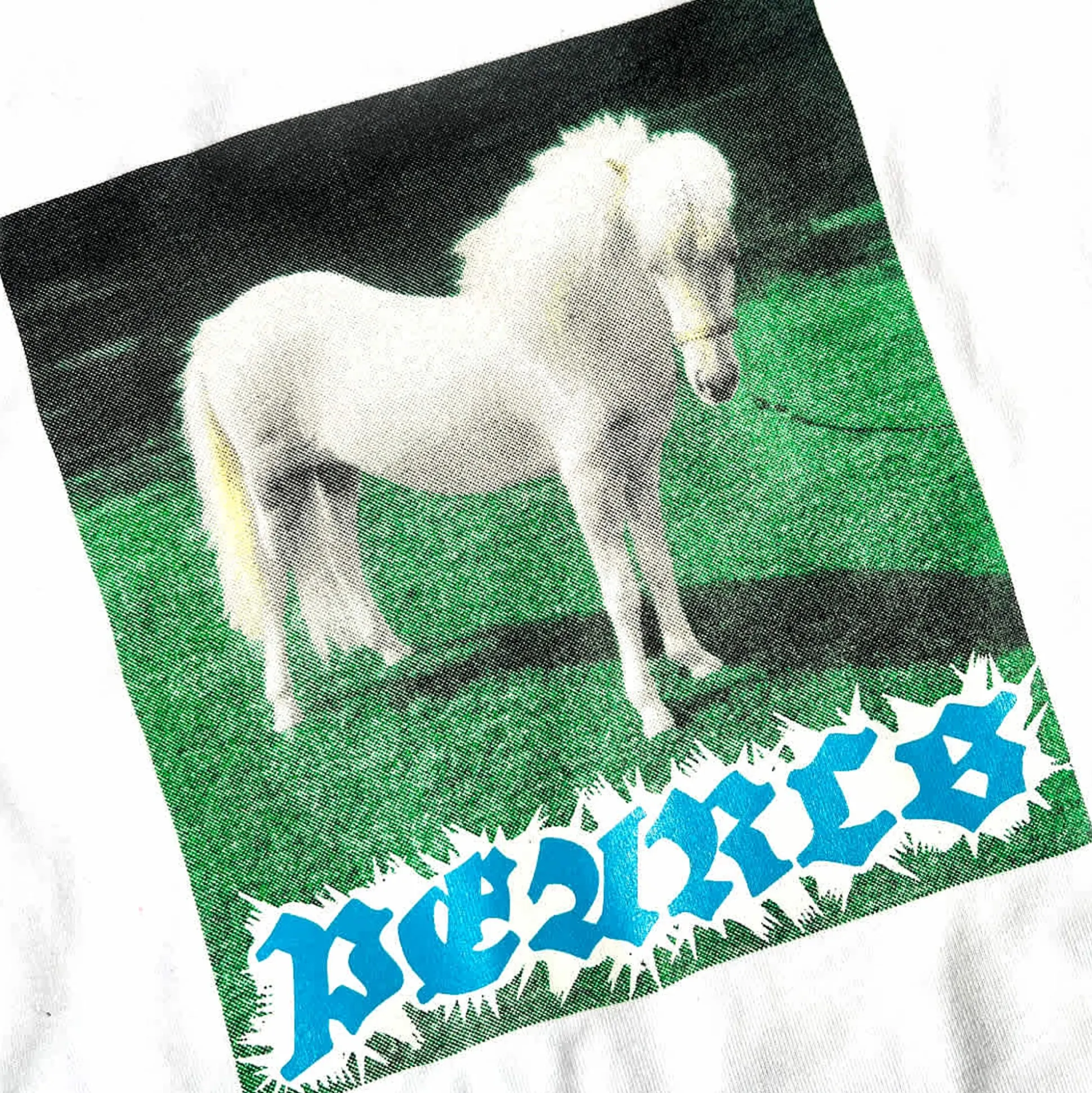 Melbourne based skate brand Pearls Skateboards presents range 9 to Pass~Port Store & Gallery. The Pony tee in white is made from 100% cotton and features screen printed graphic.