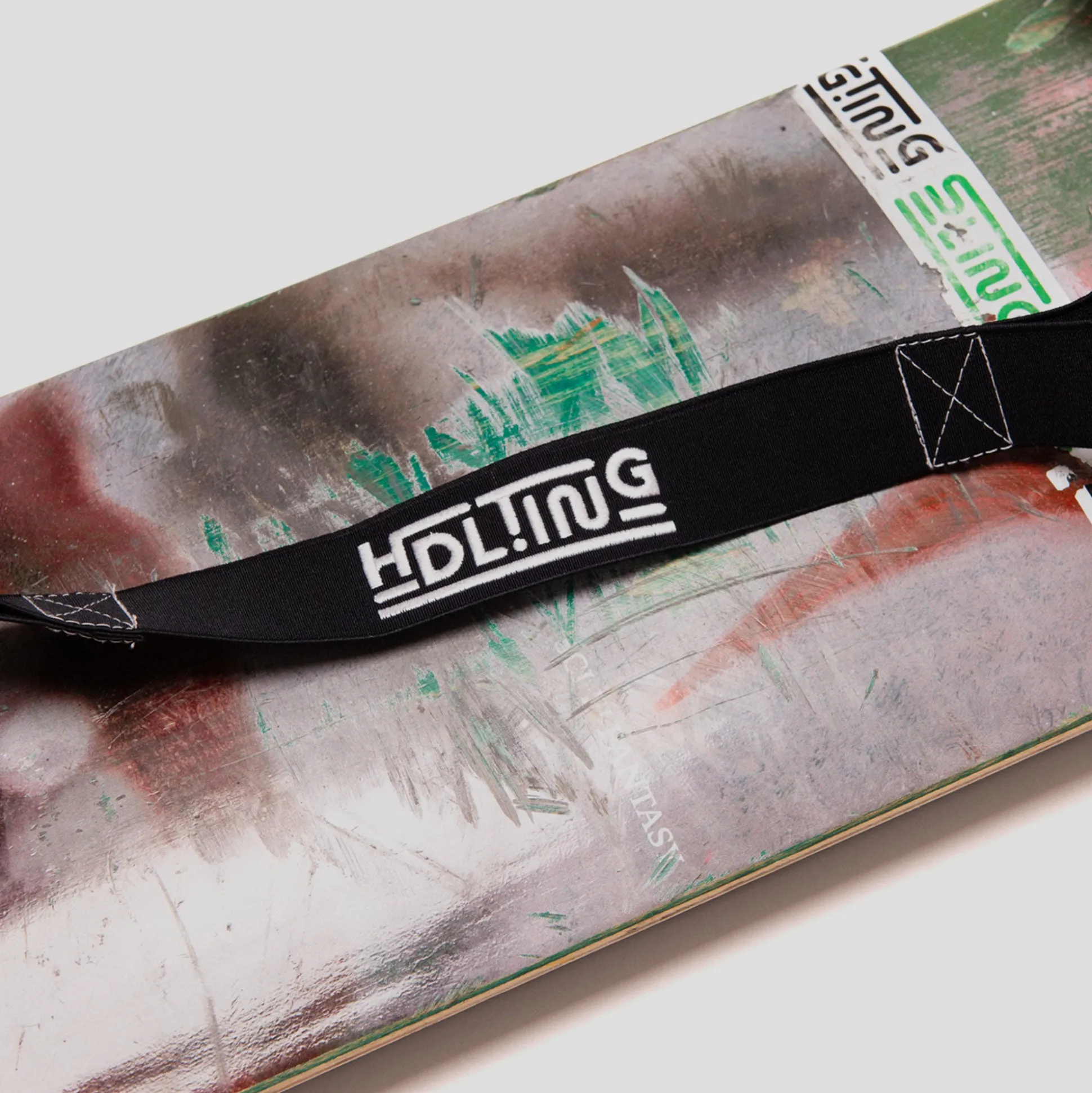 A new selection of colours from Slingting. This embroidered skateboard sling is in new collaboration with Hoddle Skateboards. The Sling acts as a skate holder by using the two loops on each end placing them around the trucks of your skate board and throwing over your back.